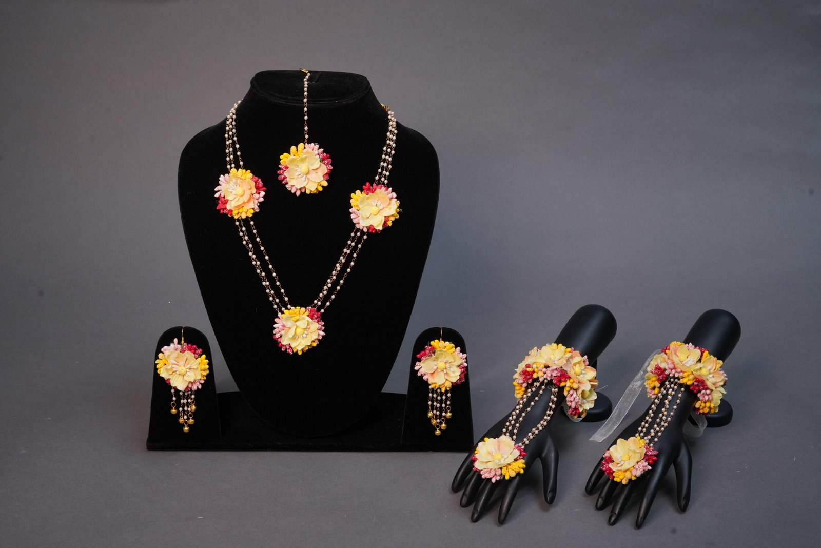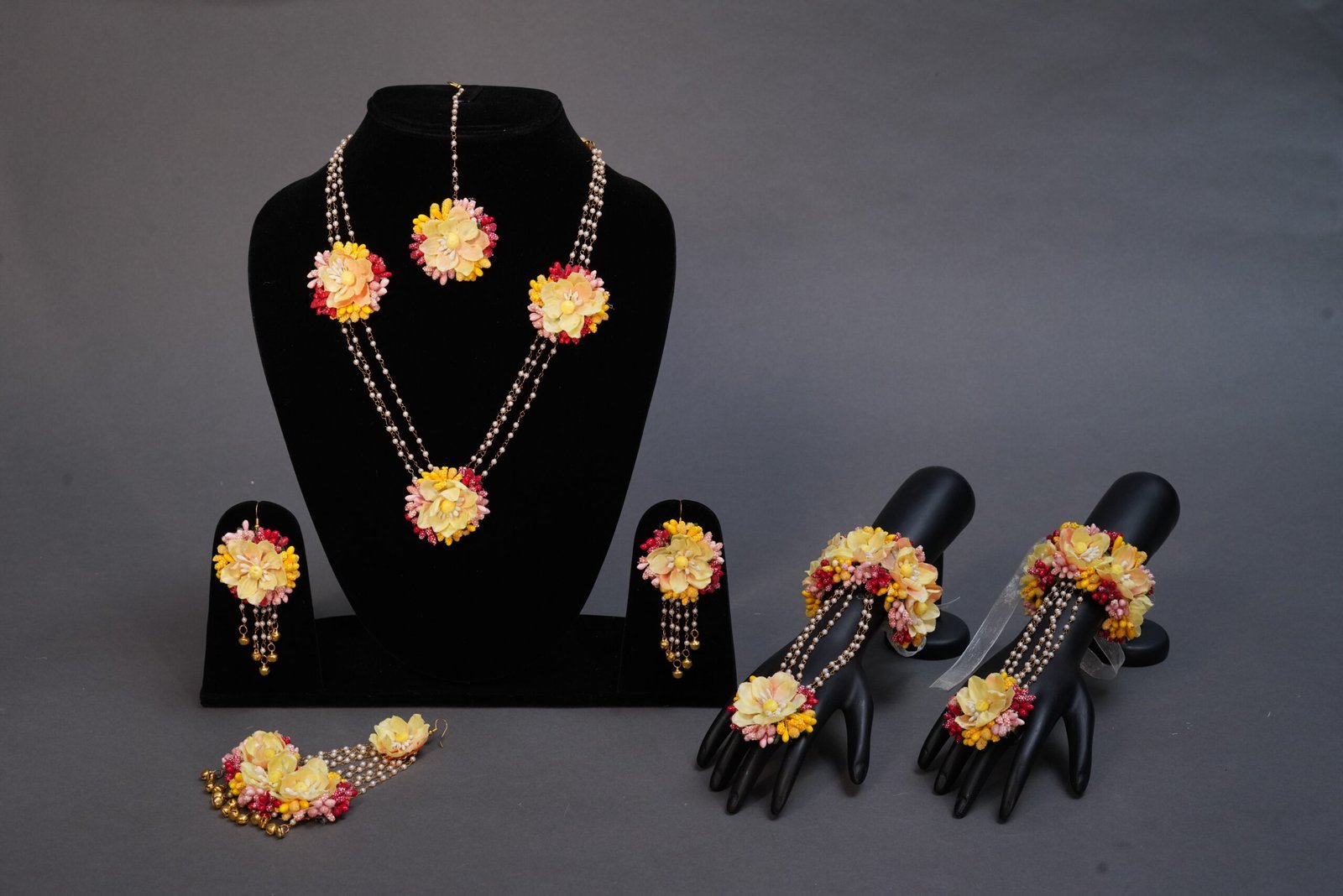 One necklace, one passa, one bracelet, one pair earring, one tika.