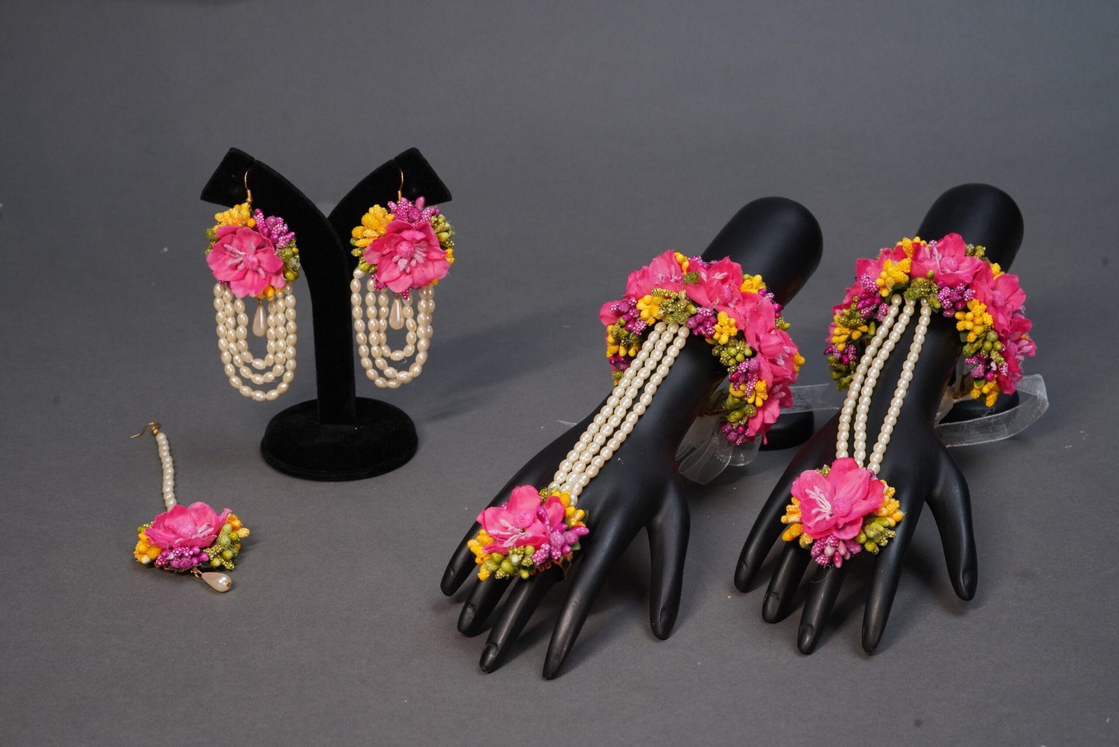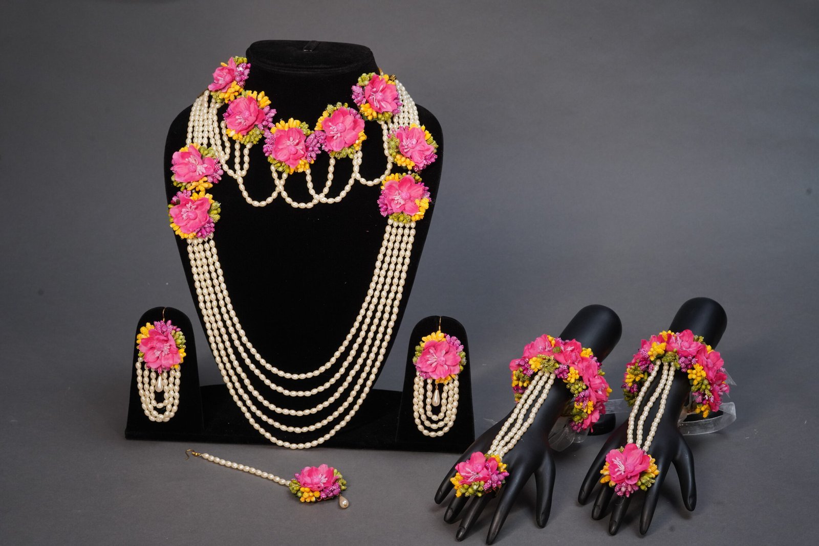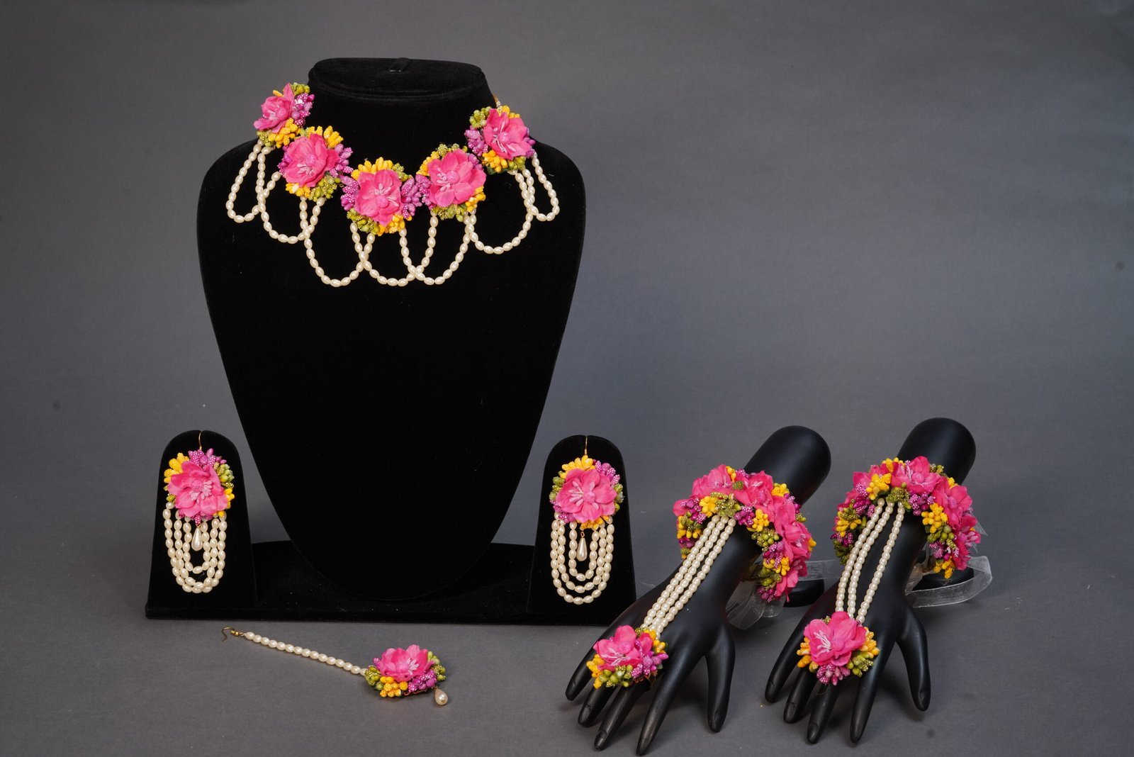 One tika, one earring, 2 necklace, one pair bracelet.