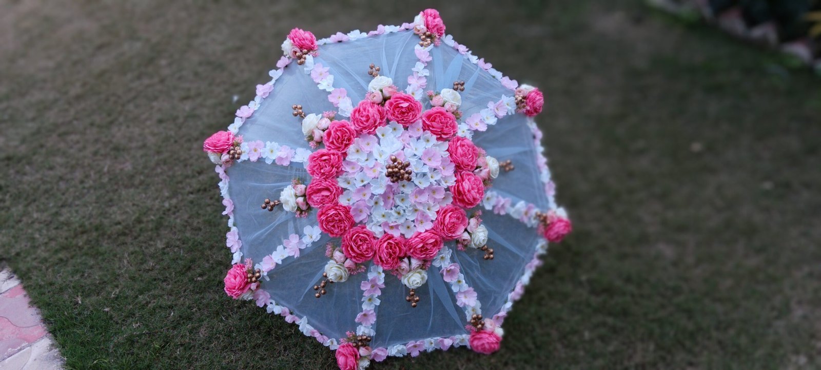 Baby Pink Floral Umbrella with veil.