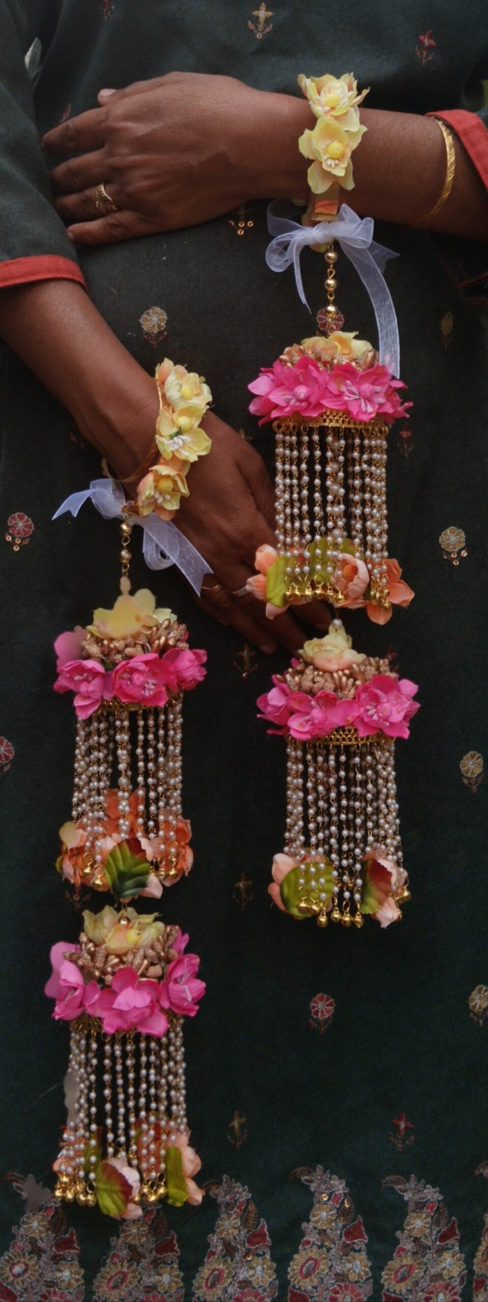 Bangles adjustable to all size ribbon is provided to tie them according to hand size.