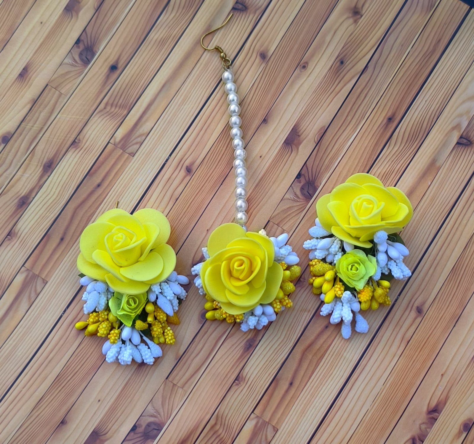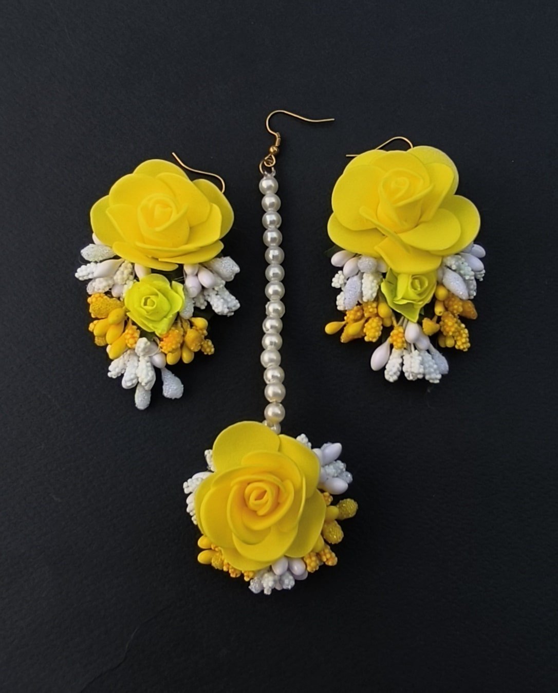 The Floral Yellow Earrings Tika Set is a radiant and cheerful accessory that captures the essence of sunshine and elegance. Featuring intricate yellow floral designs, this set adds a vibrant, fresh touch to any traditional ensemble. Ideal for weddings, festivals, or celebratory occasions, the Floral Yellow Earrings Tika Set enhances your look with its bright and feminine charm, making it a perfect choice for both gifting and personal style.