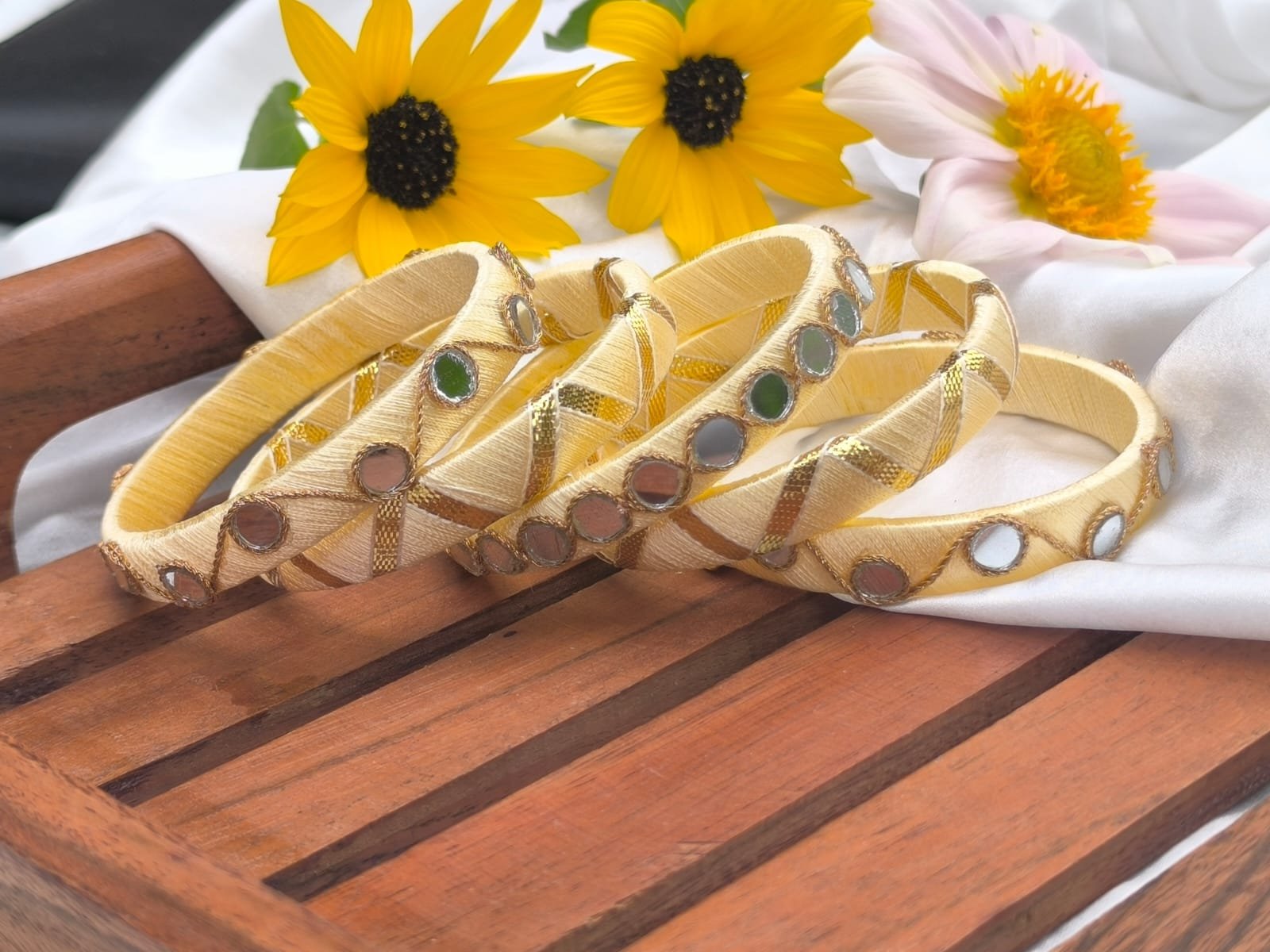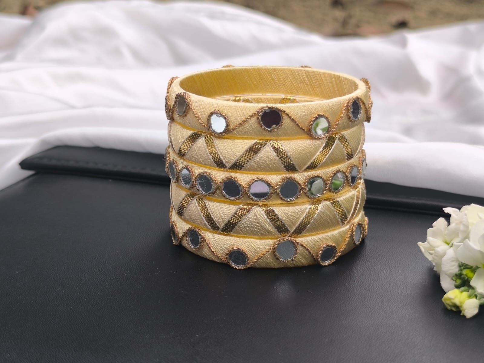 Gaurika Silk Thread Mirror & Gotta Bangle Set (5 Pieces)