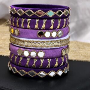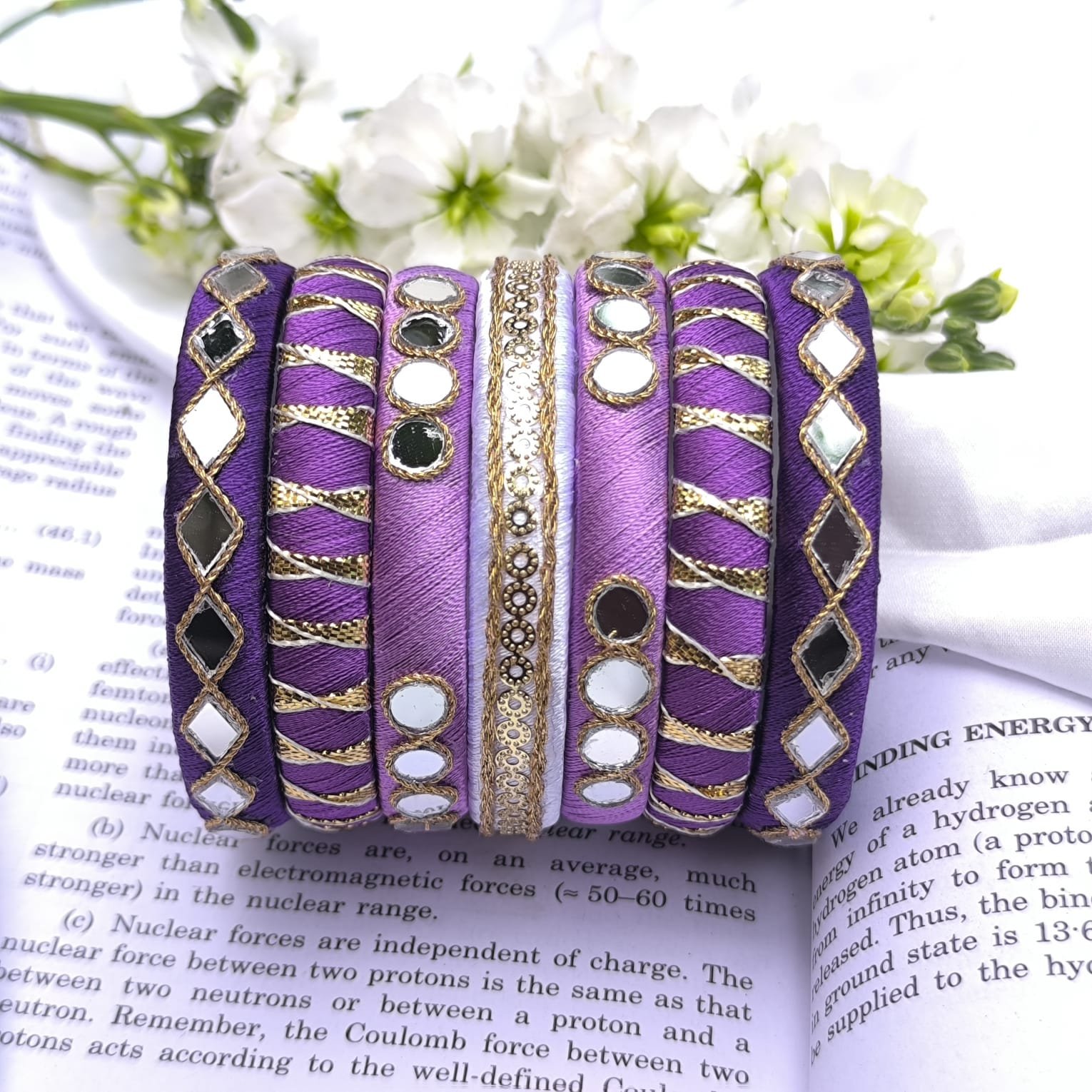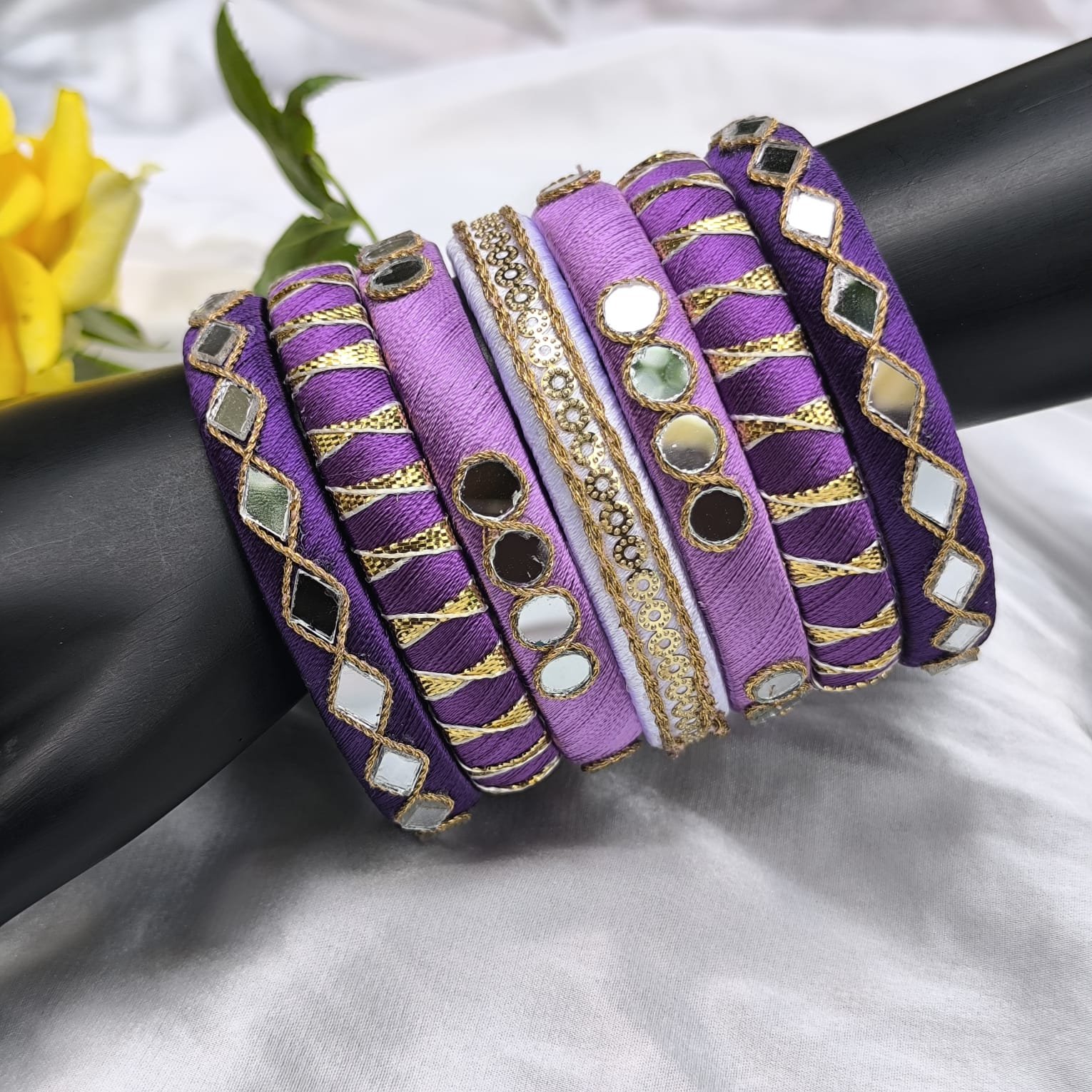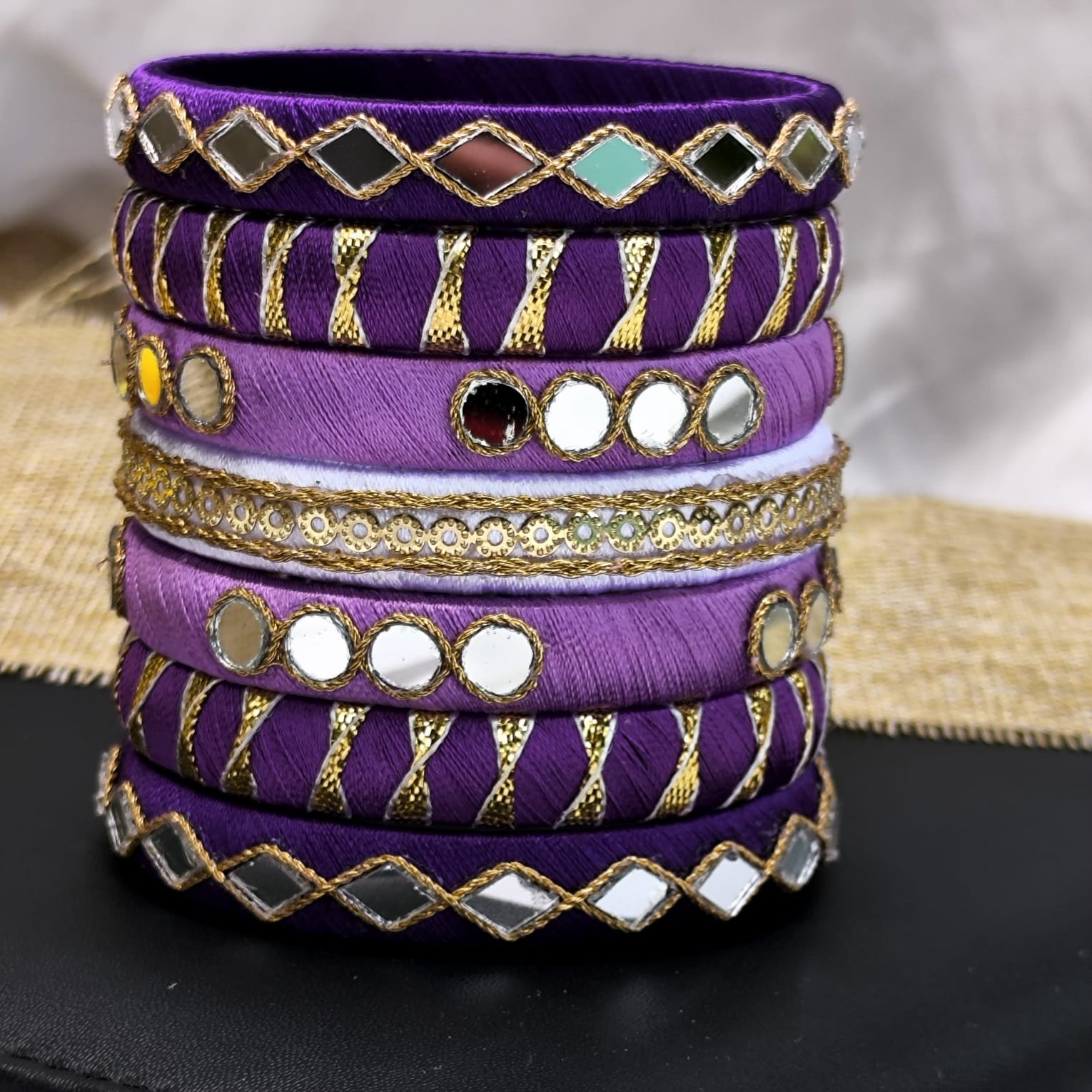 Handcrafted Silk Thread Mirror & Gotta Bangle Set (7 Pieces)