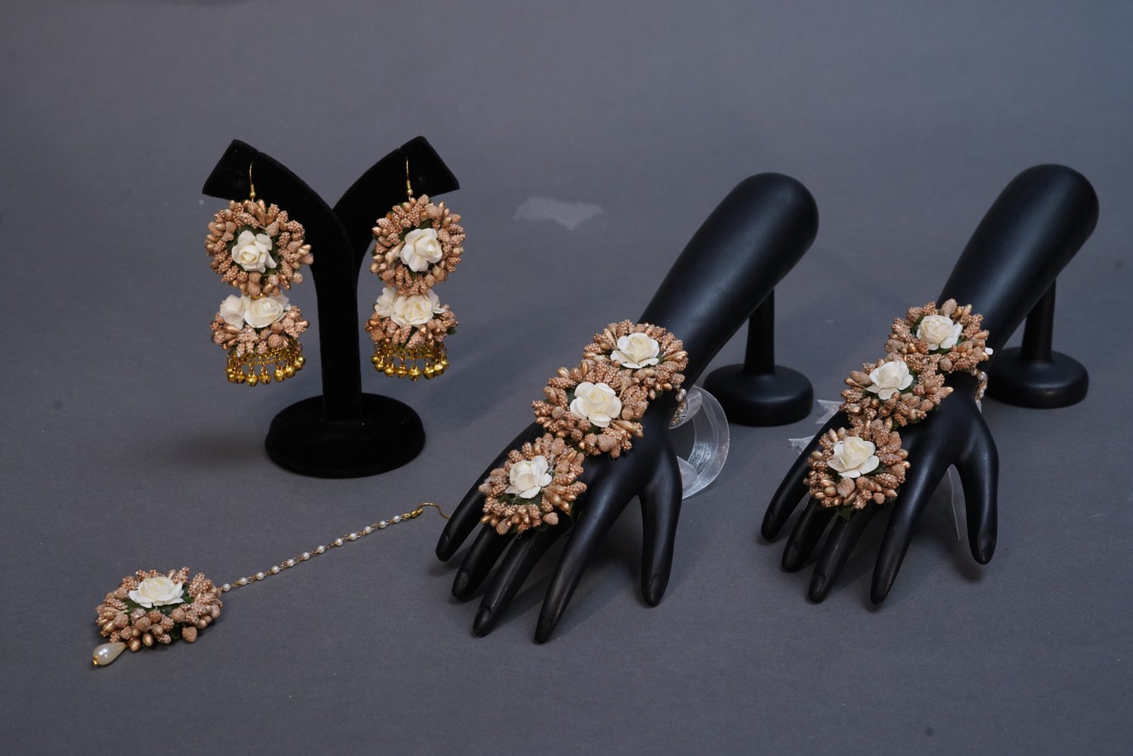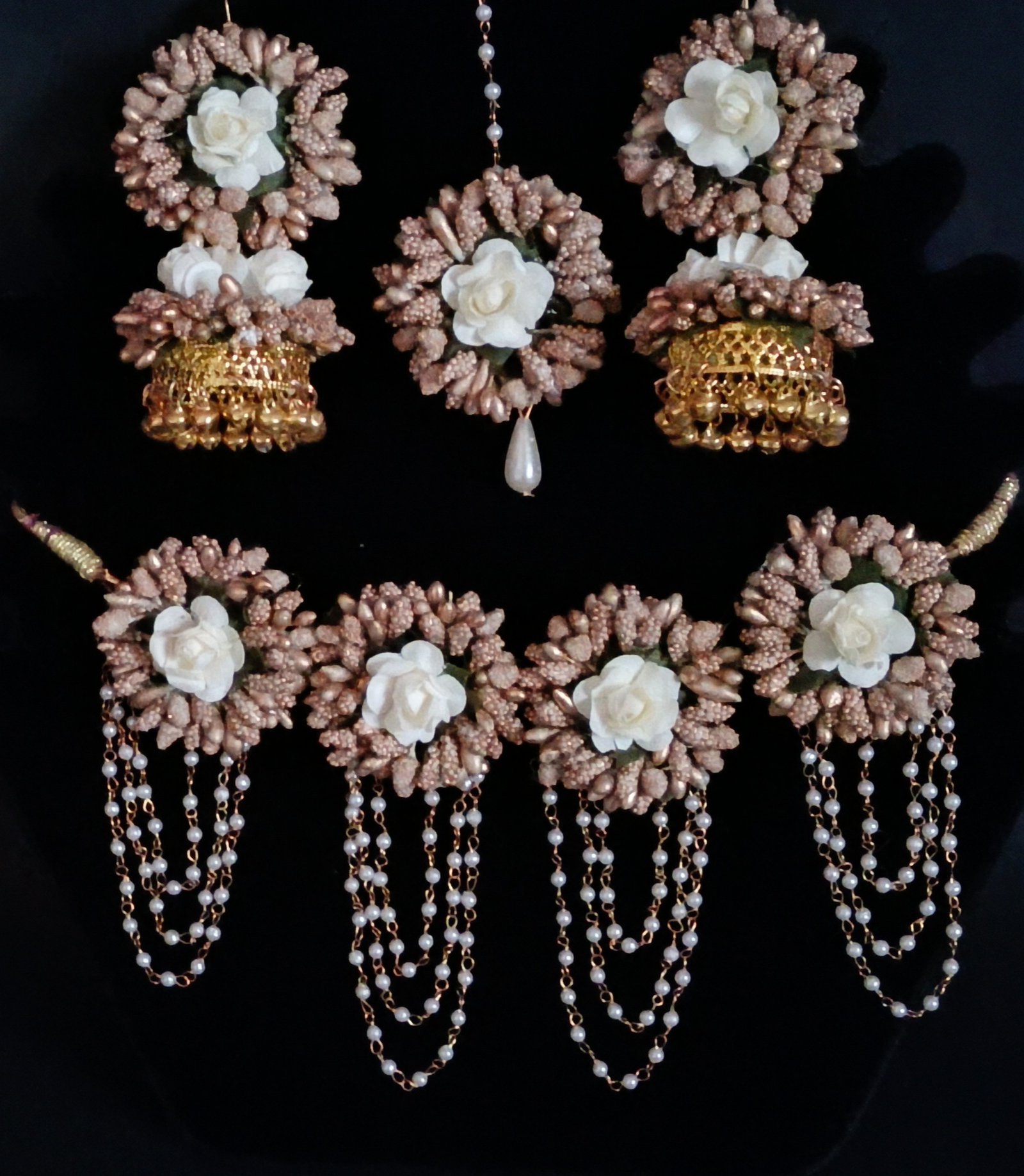 One necklace, one tika, one pair bracelet, one pair earring.