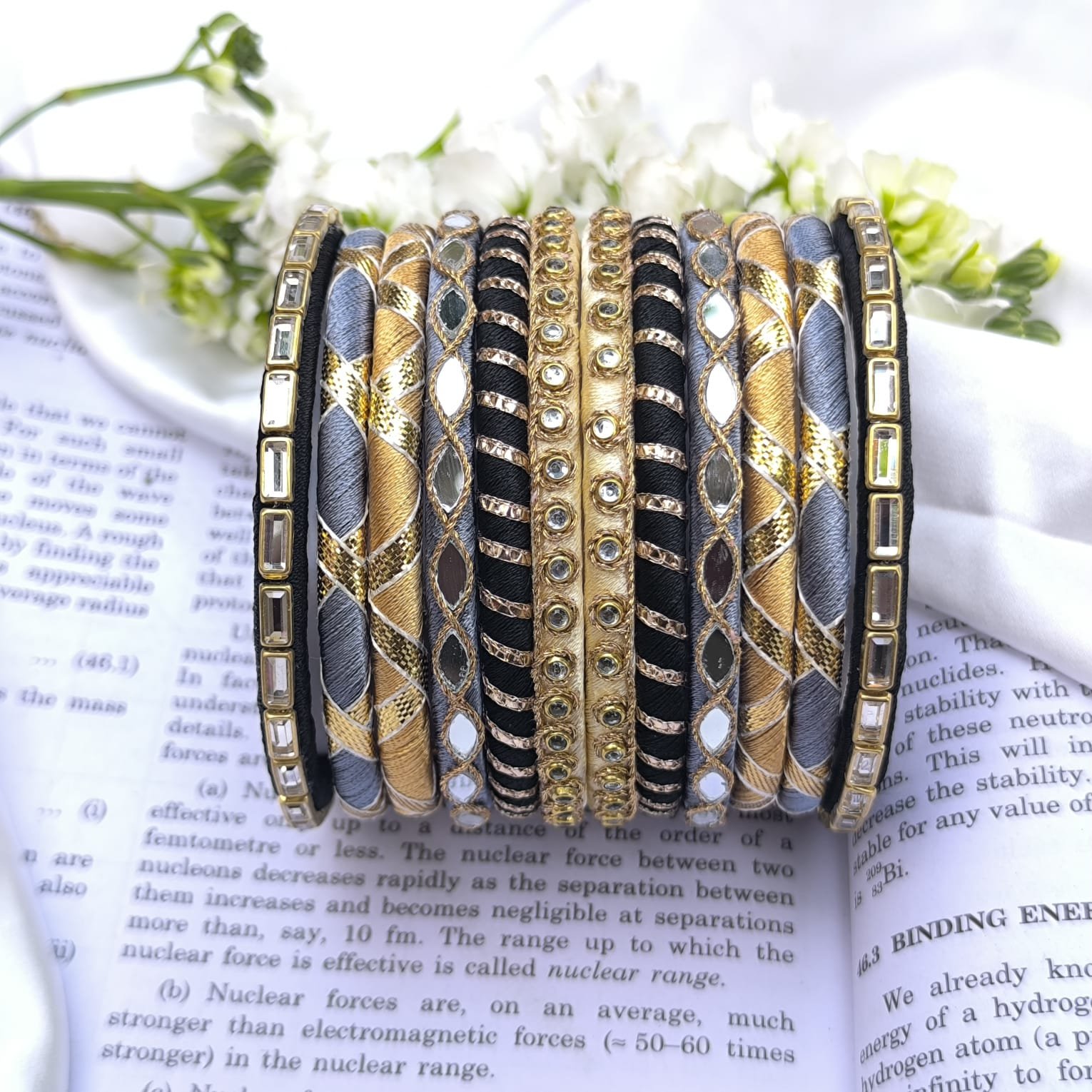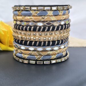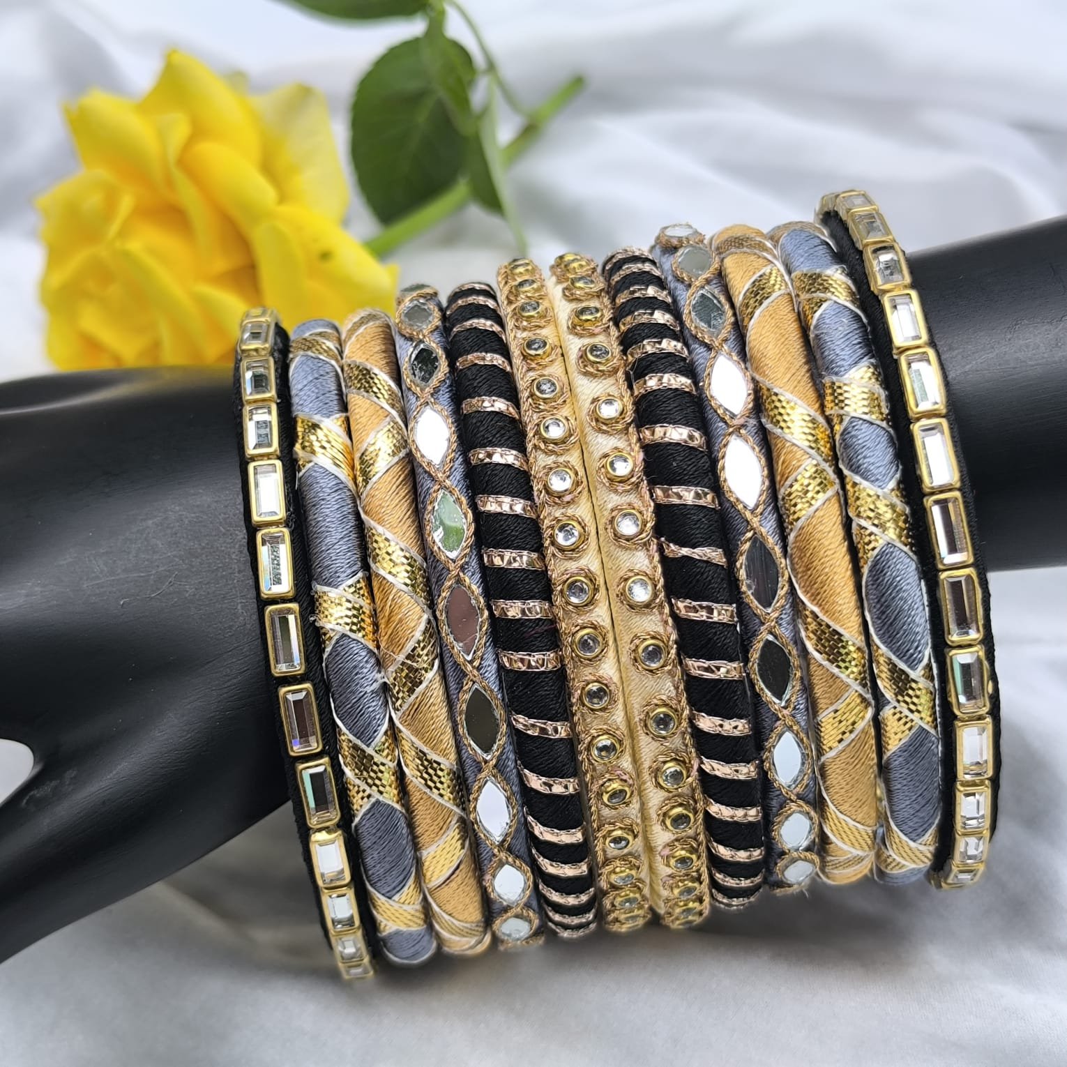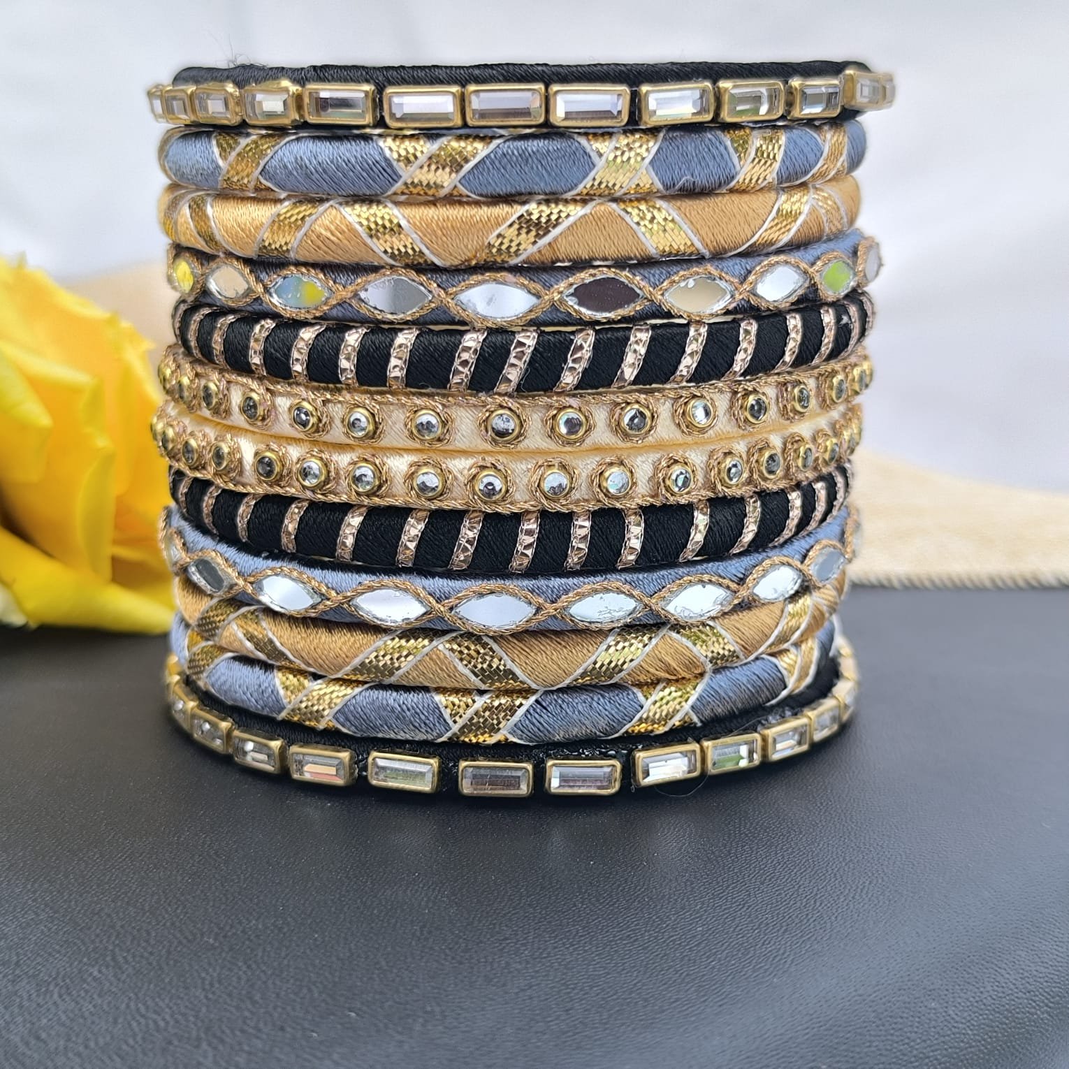 Ishani Thin Silk Thread Kundan & Gotta Bangle Set (12 Pieces)