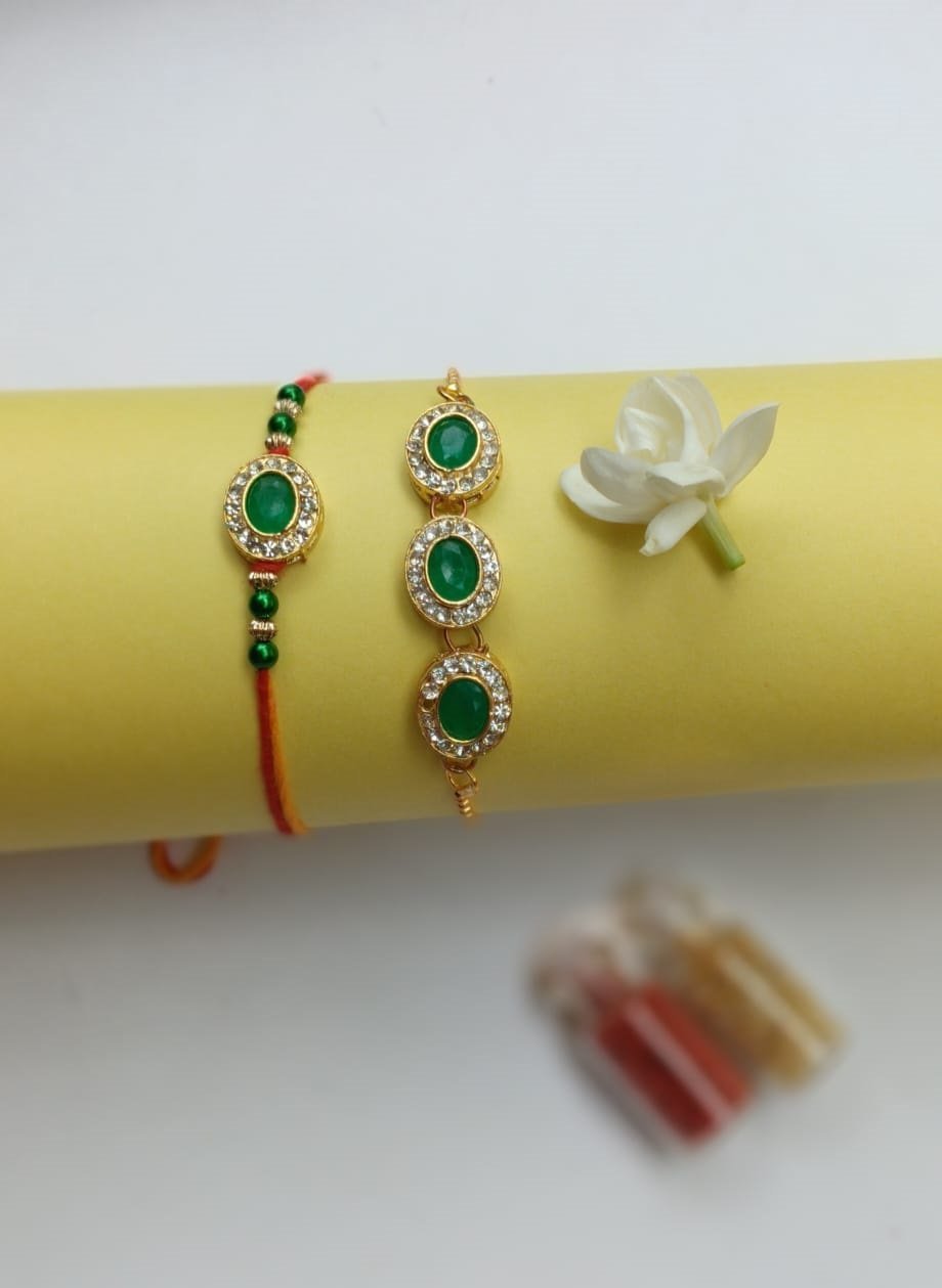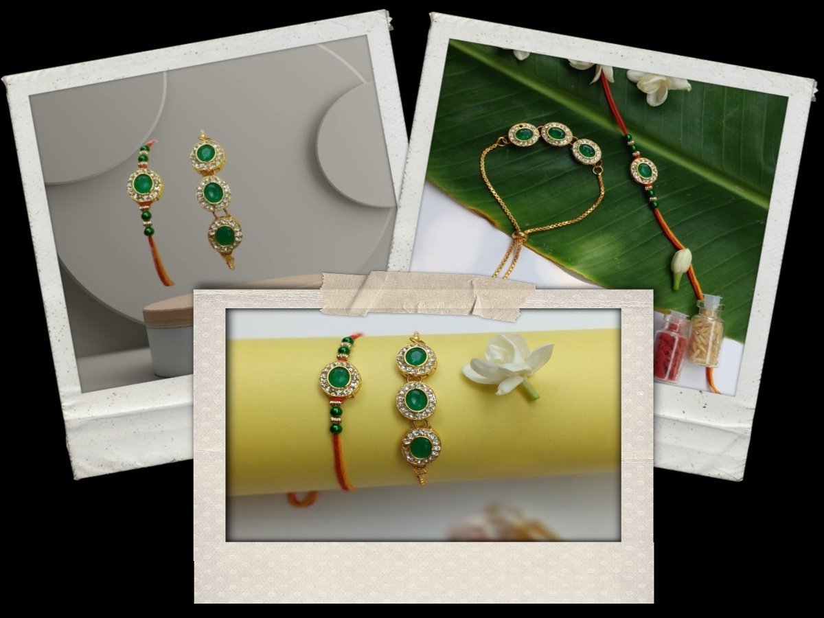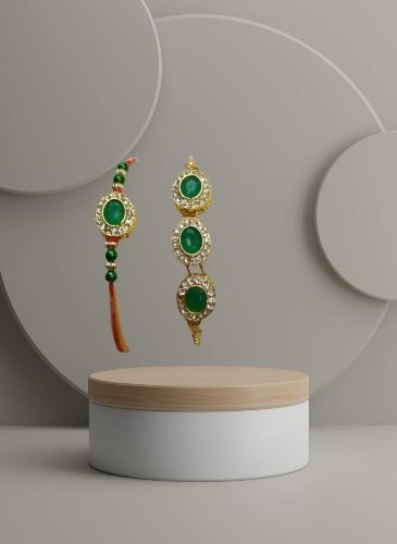 Be the first to review “Jewelled Emerald Rakhi Set”