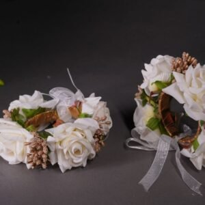 The Ivory Color Floral Bracelet exudes timeless elegance with its soft, ivory-colored flowers. Handmade with intricate detail, this bracelet is perfect for brides, bridesmaids, or any special occasion. Its delicate design adds a graceful touch to any outfit, offering a blend of classic beauty and modern charm. Ideal for those looking to add a subtle, sophisticated flair to their look, this floral bracelet is perfect for weddings, baby showers, or other memorable events.
