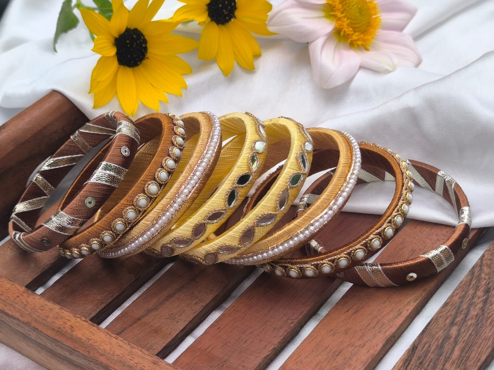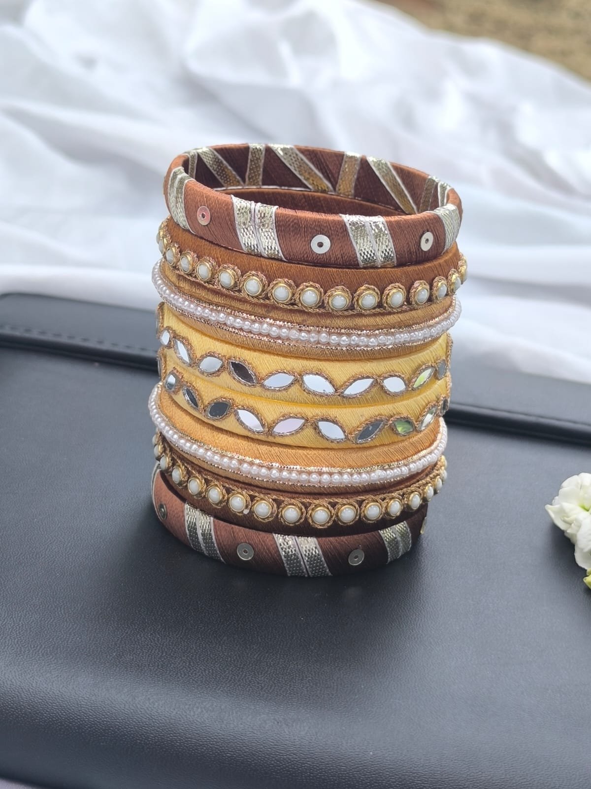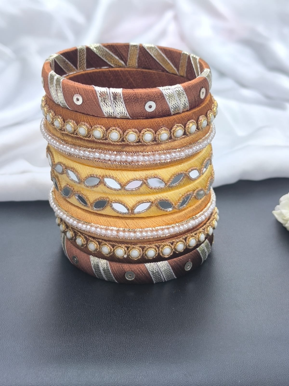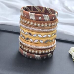 Mihishka Silk Thread Mirror, Gotta & Pearl Bangle Set (8 Pieces)