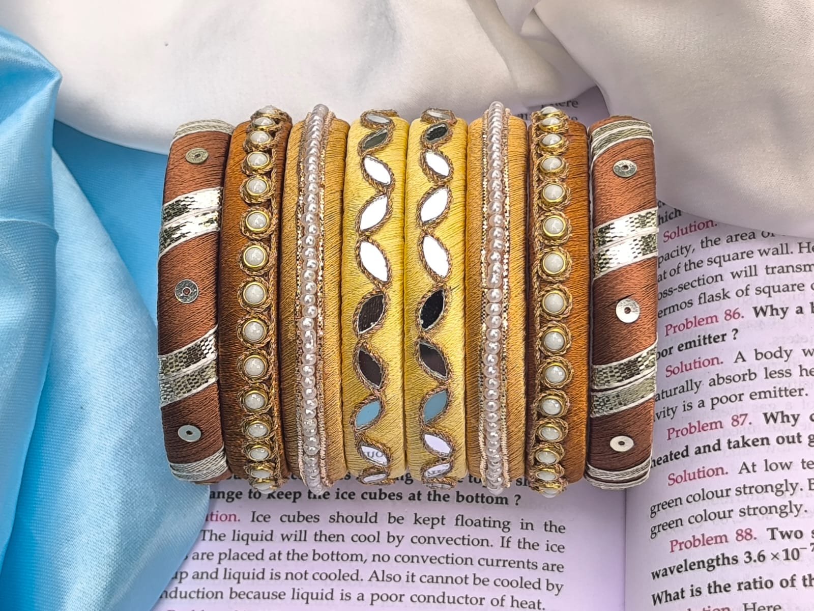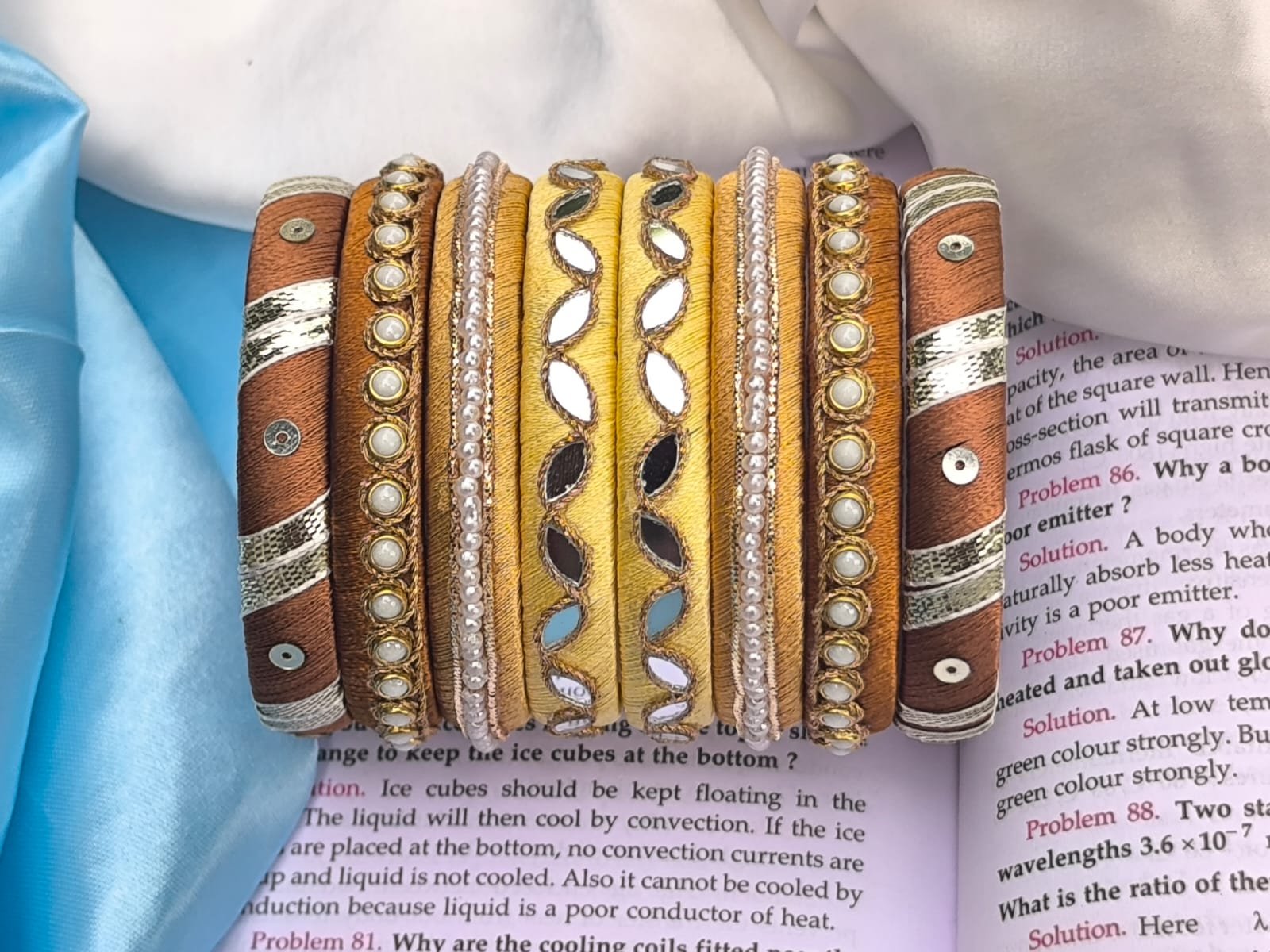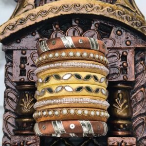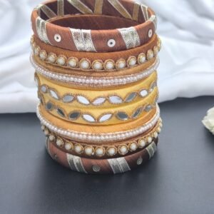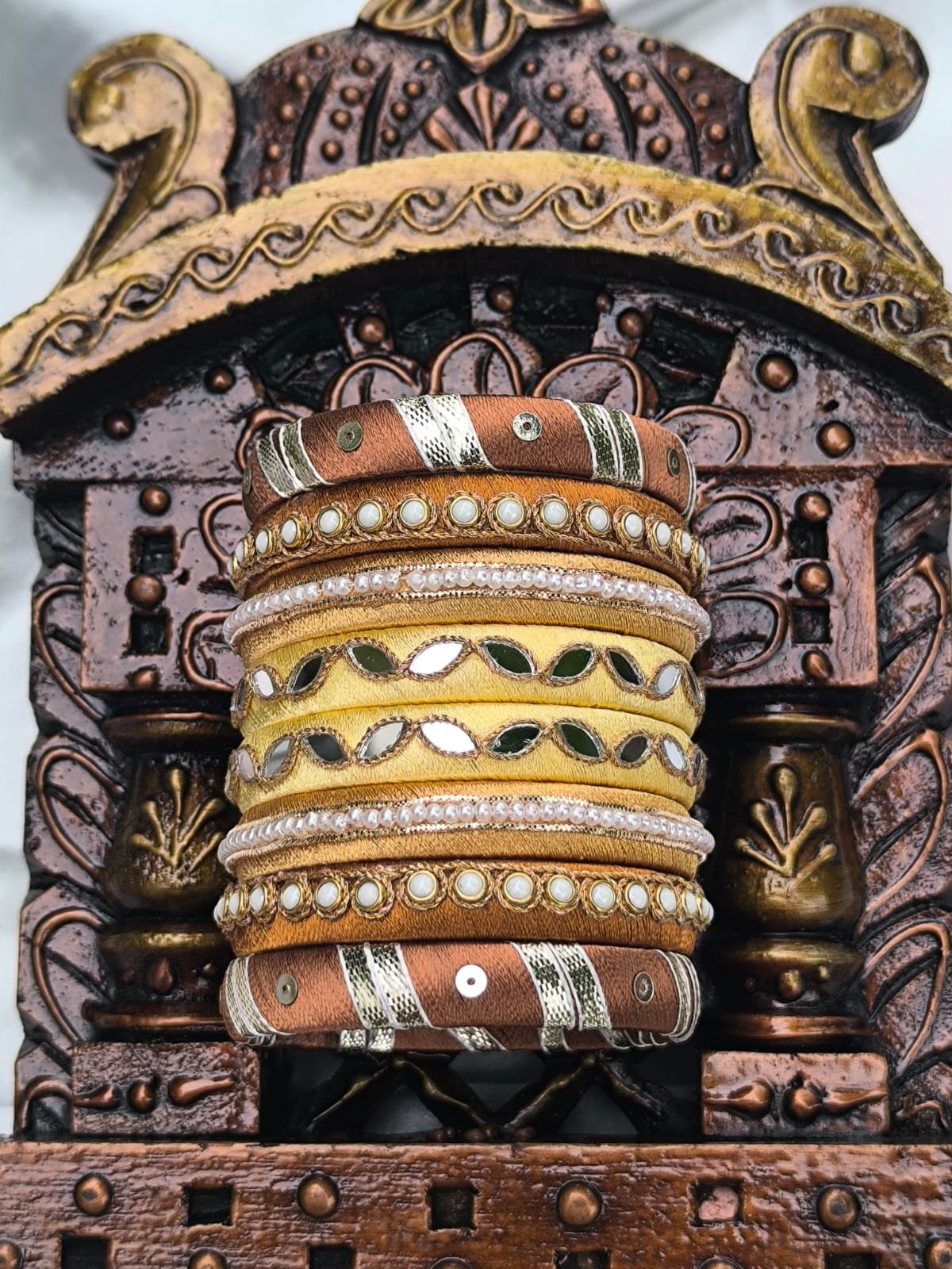 Mihishka Silk Thread Mirror, Gotta & Pearl Bangle Set (8 Pieces)