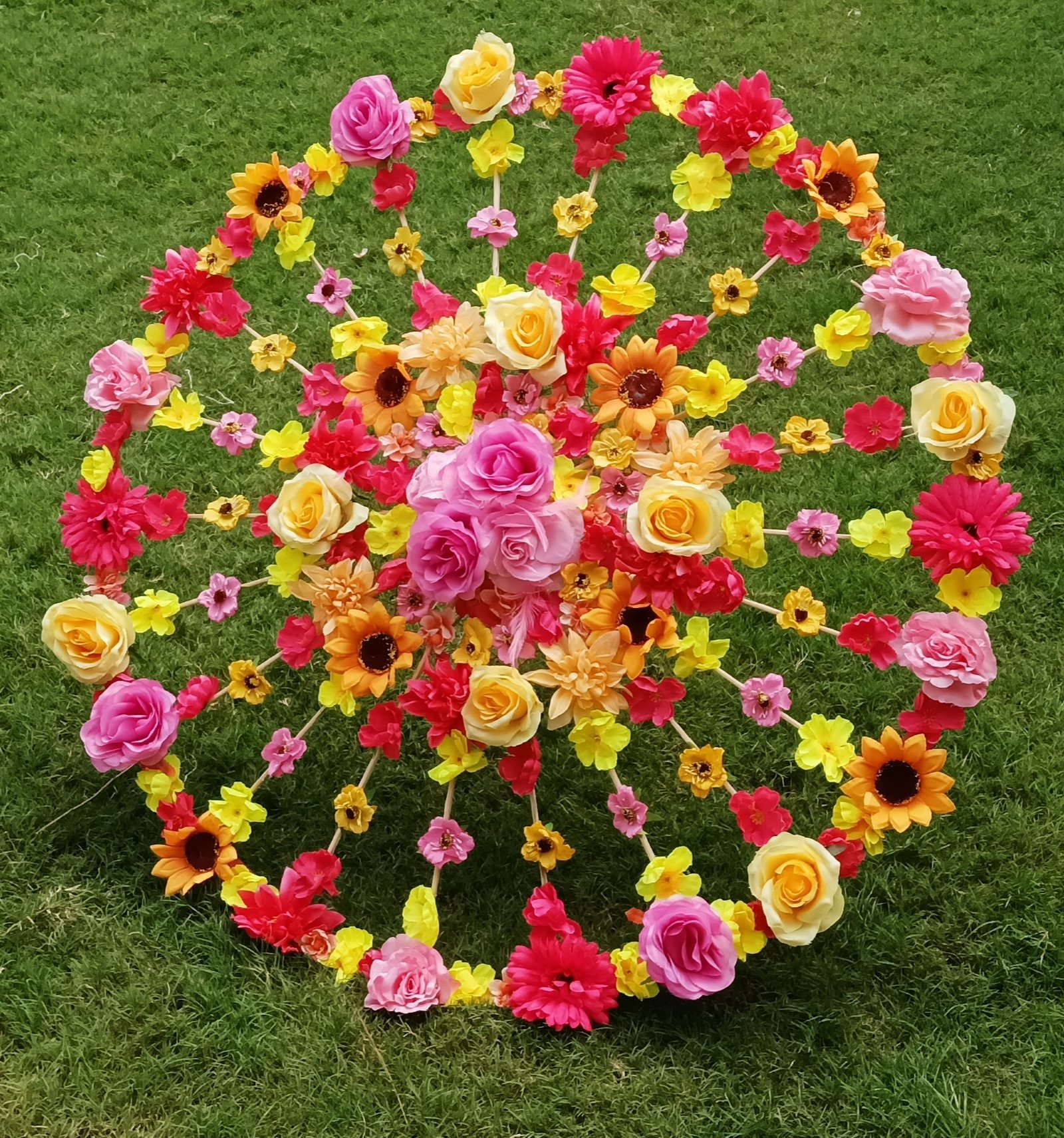 Wooden floral parasol for bridal entry. Color can be customized.