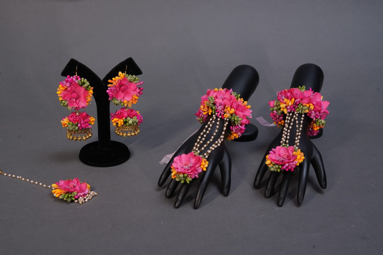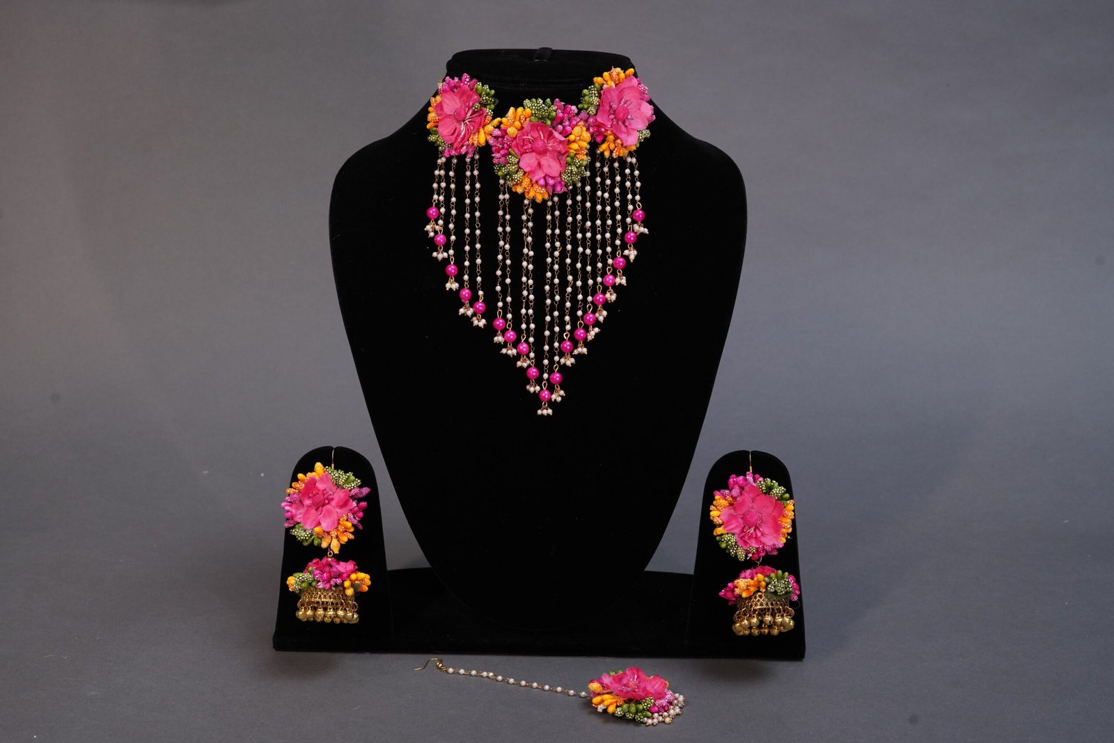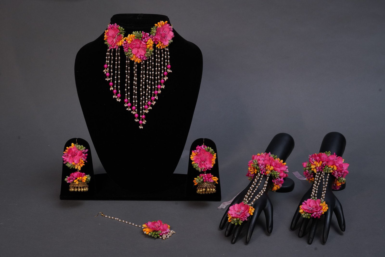 One necklace, one tika, one earring, one pair bracelet.