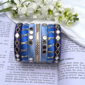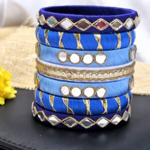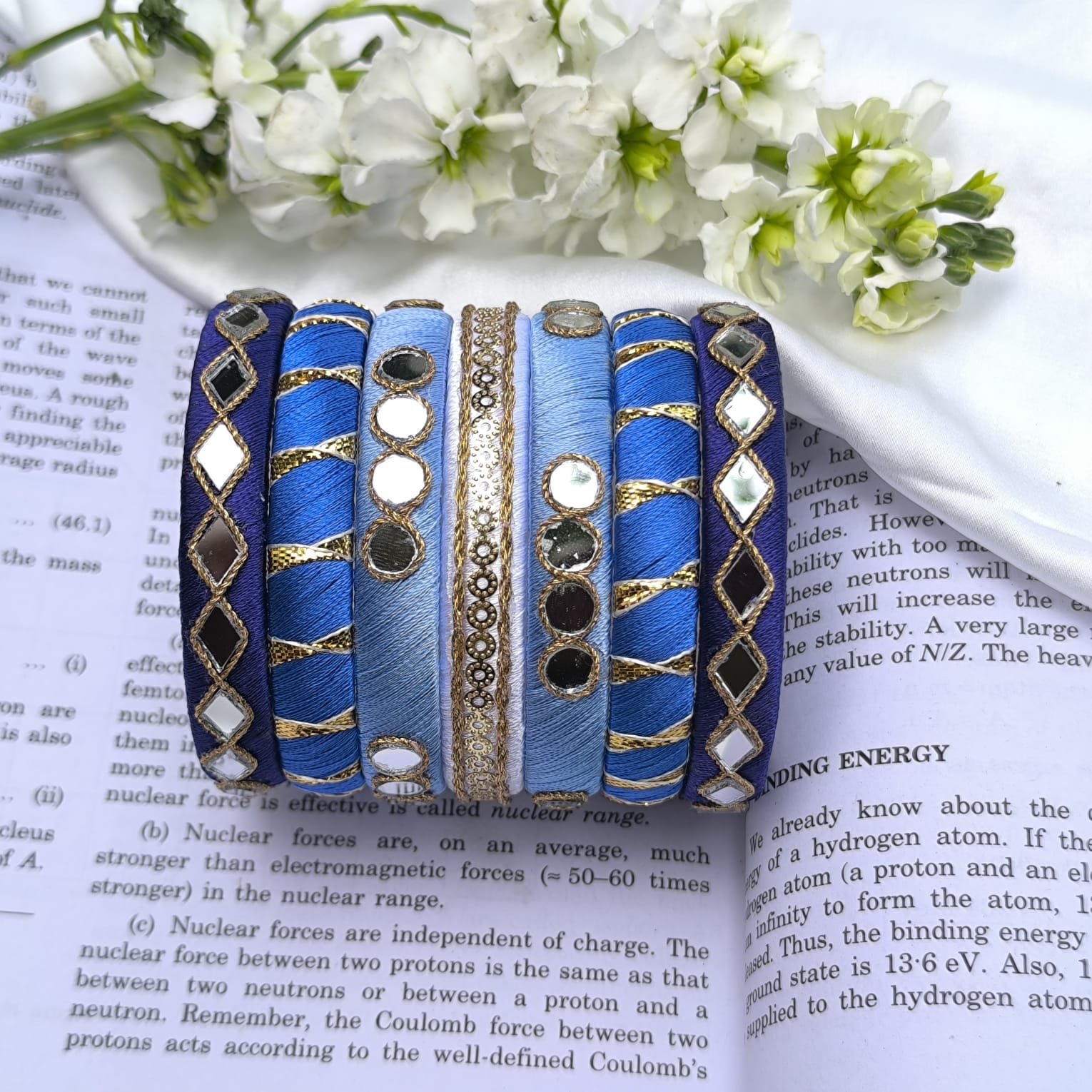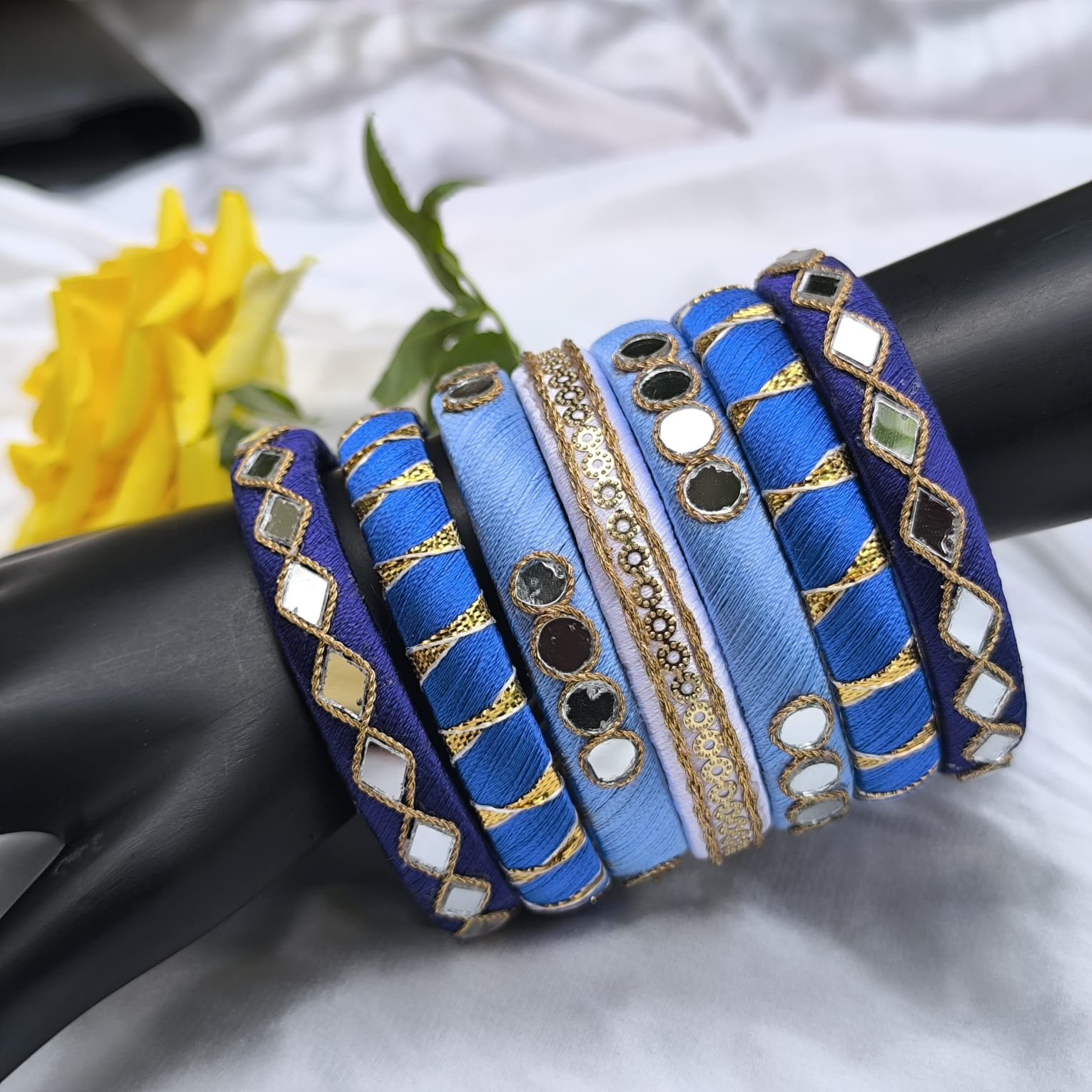 Naira Blue Silk Thread Mirror & Gotta Bangle Set (7 Pieces)