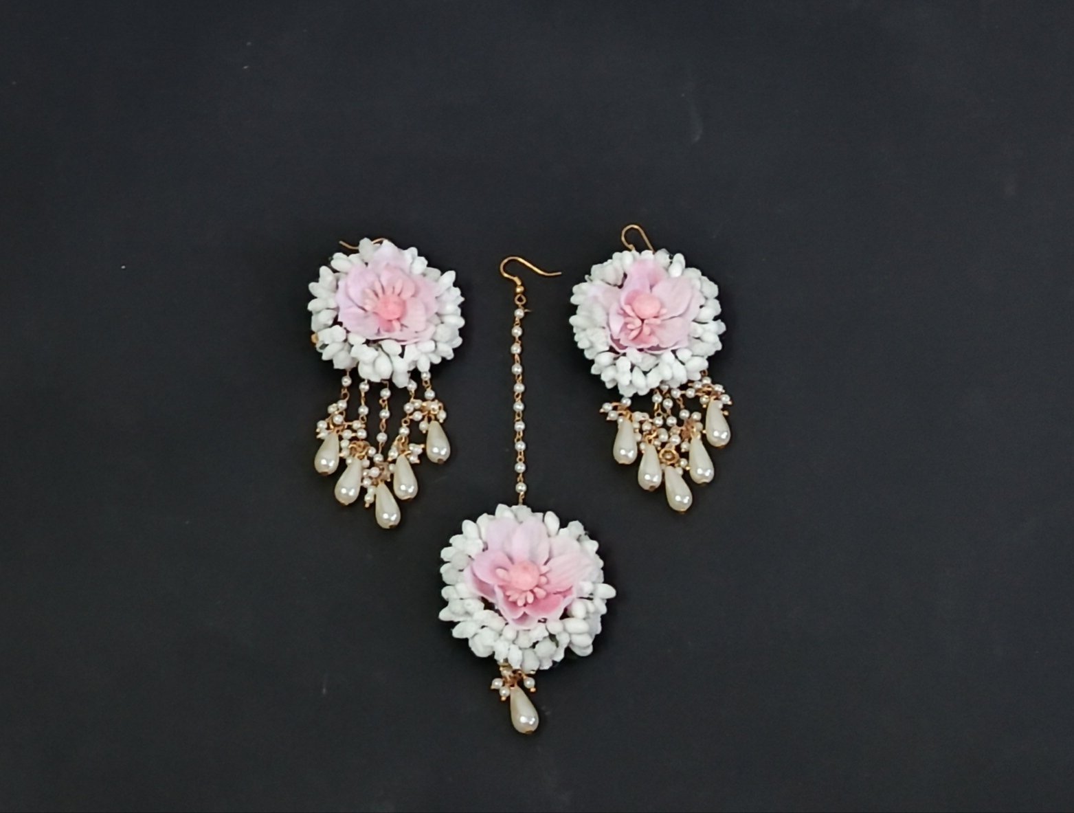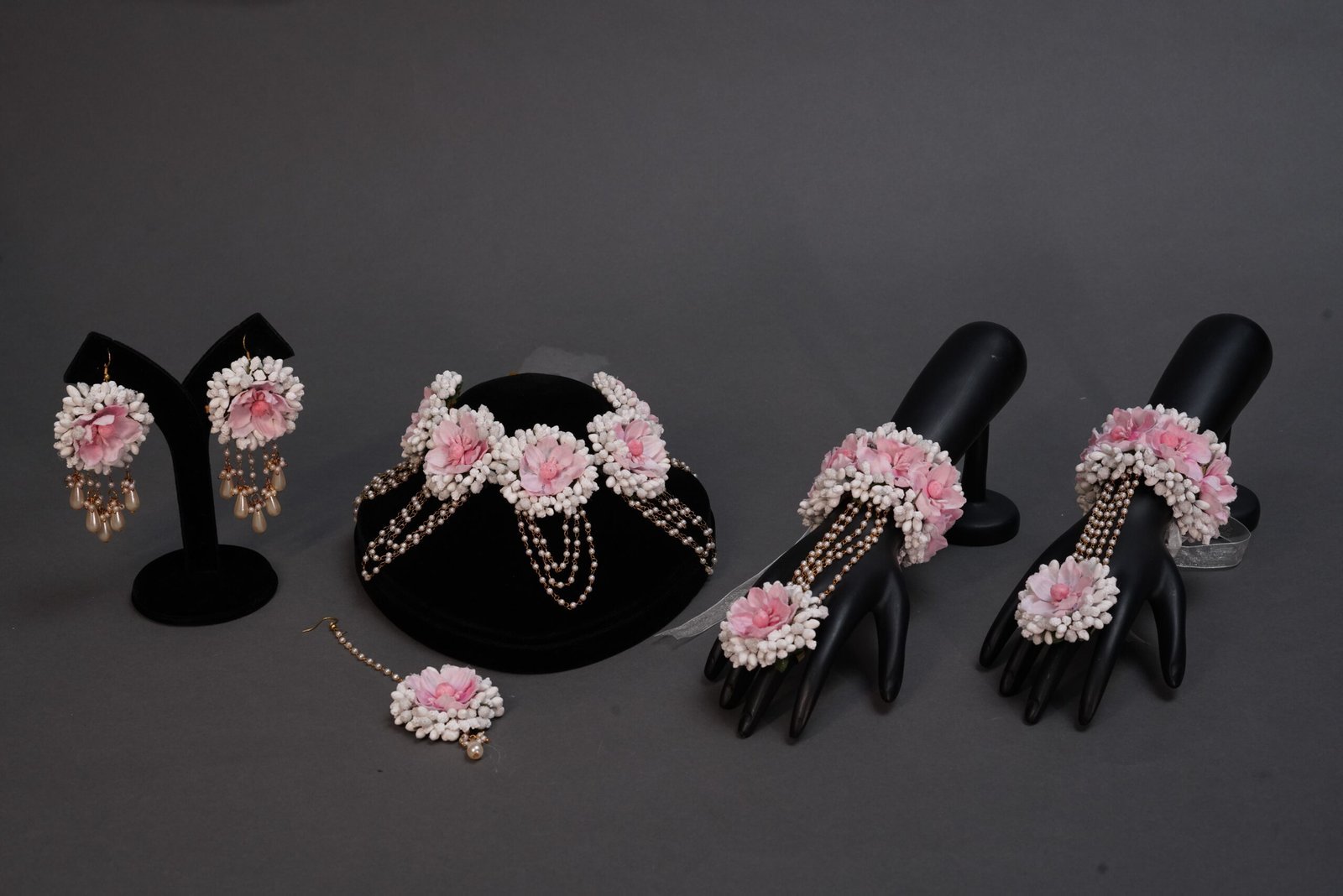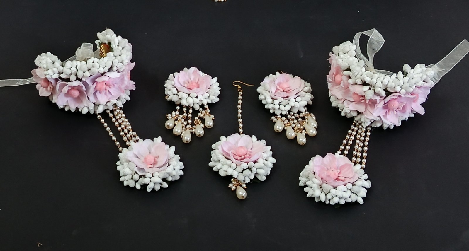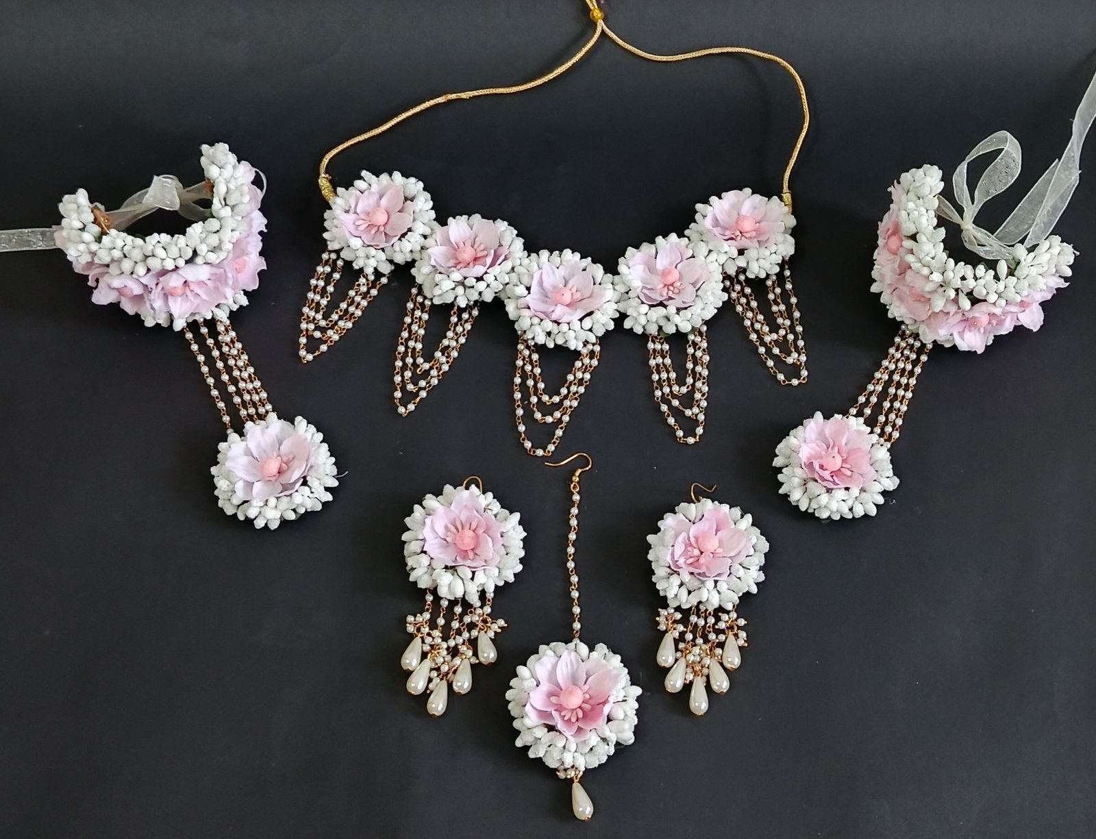 One necklace, one tika, one pair earrings, one pair bracelet.