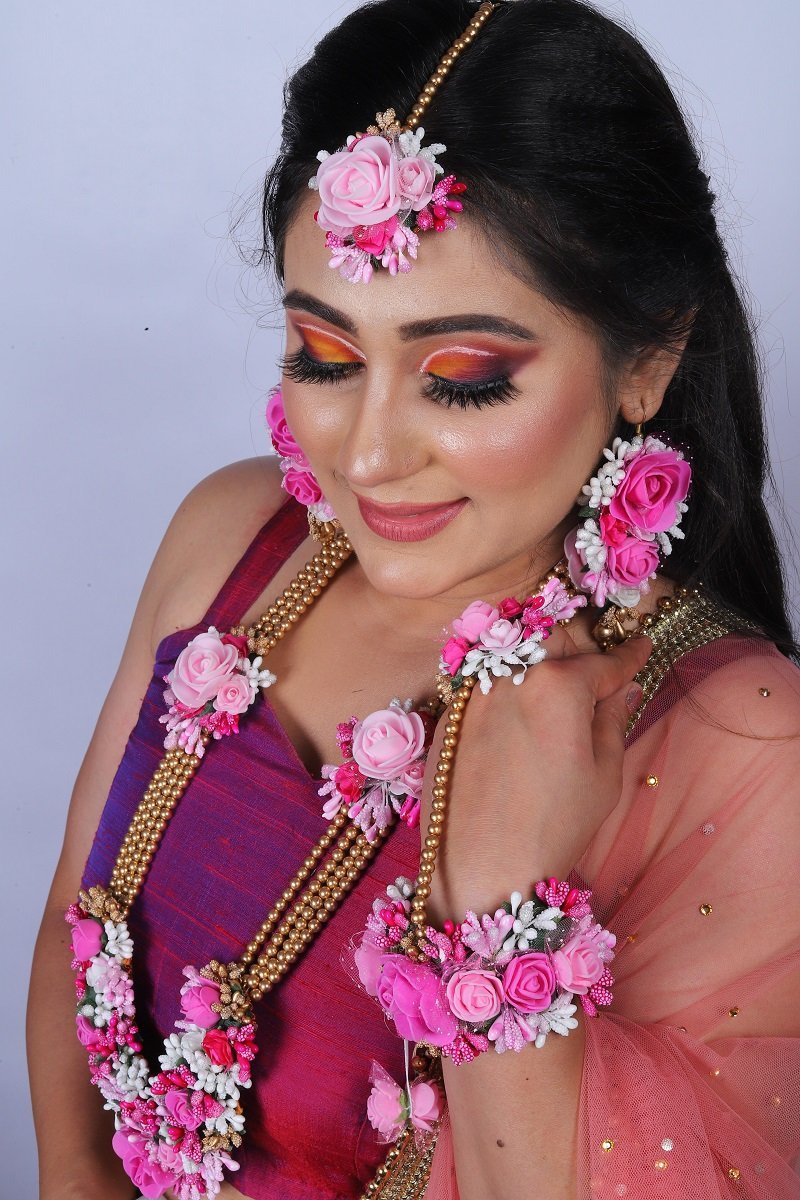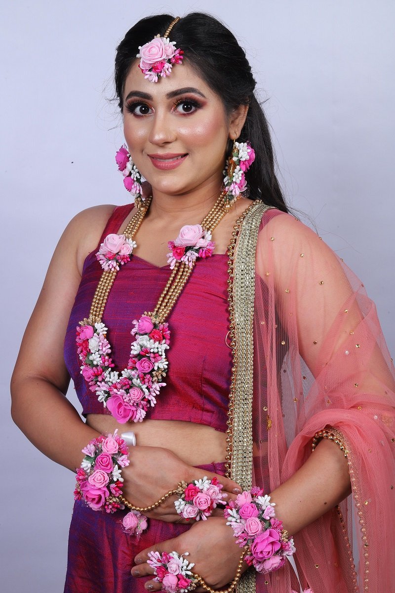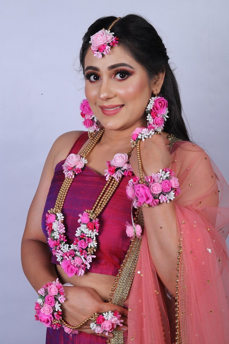 One necklace, one tika, one pair of bracelet, one pair of earrings,