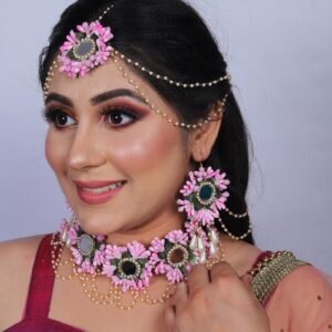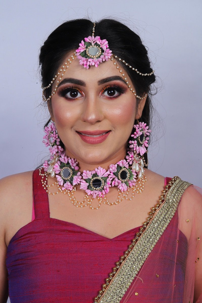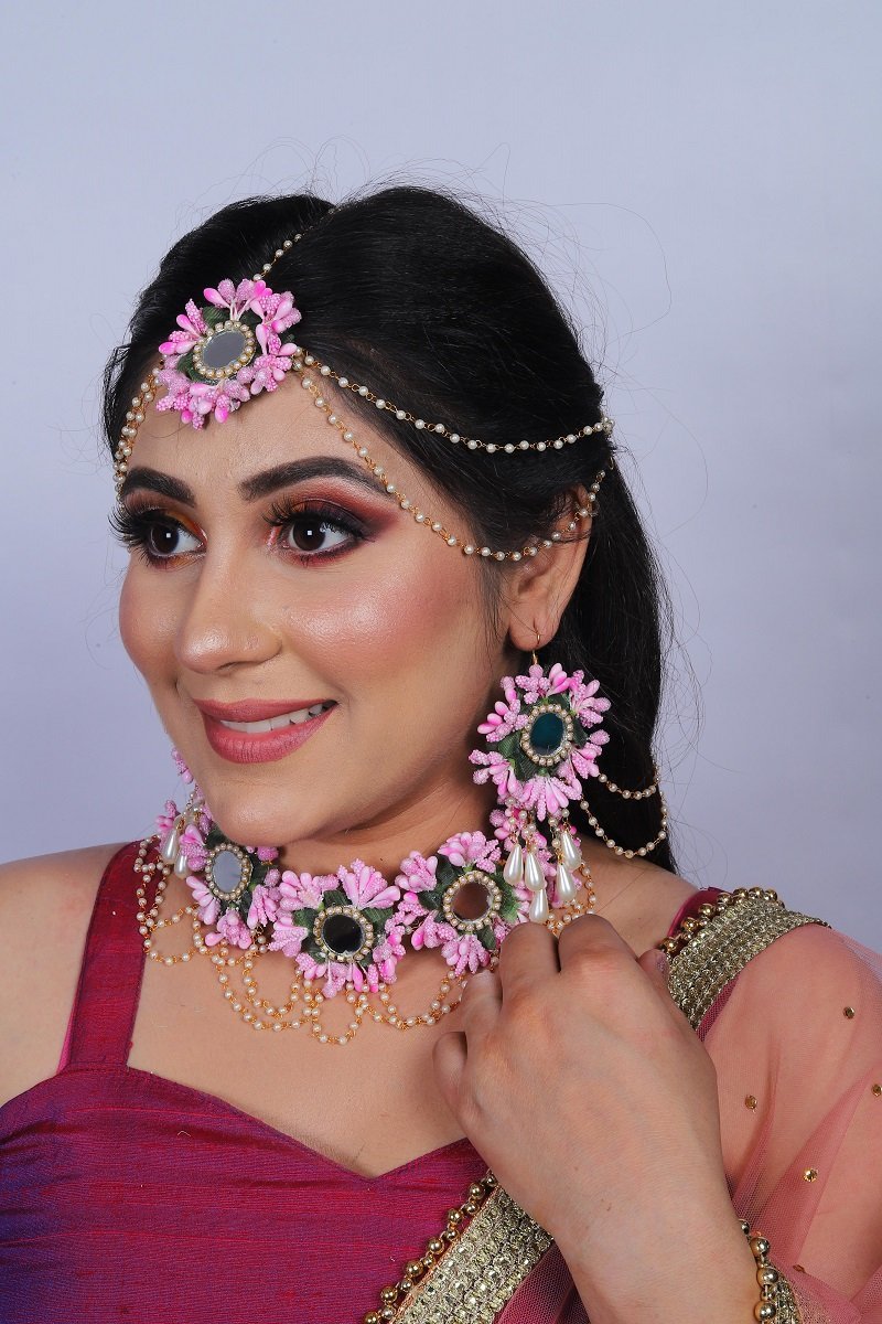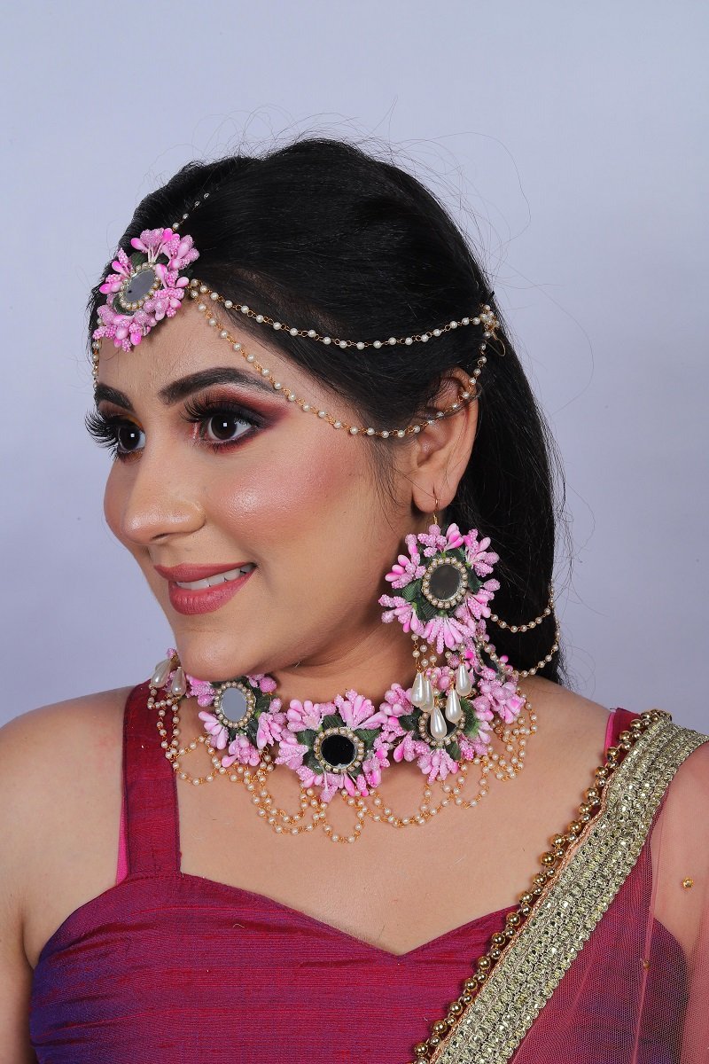 One necklace, one tika, one pair of earrings.