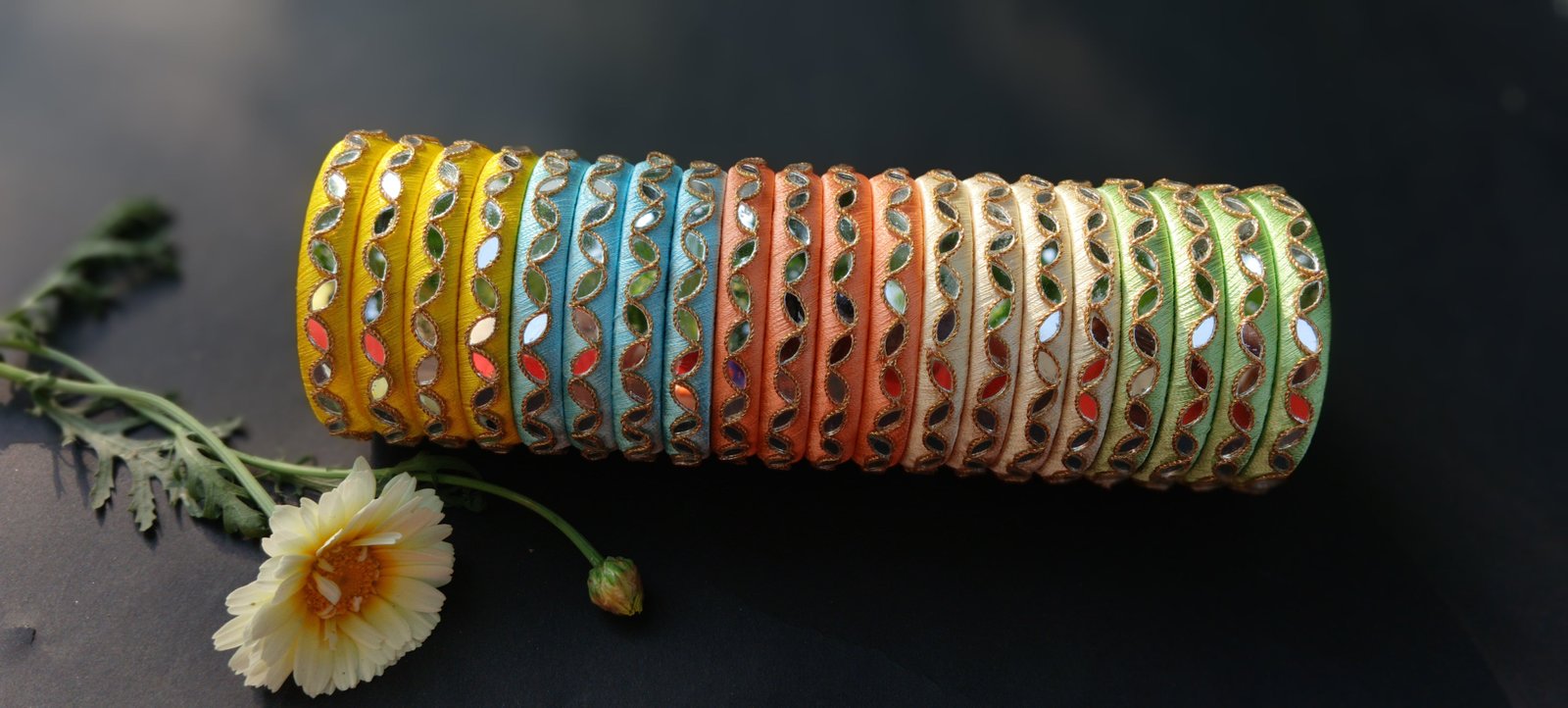 Silk Thread Mirror Work Bangle