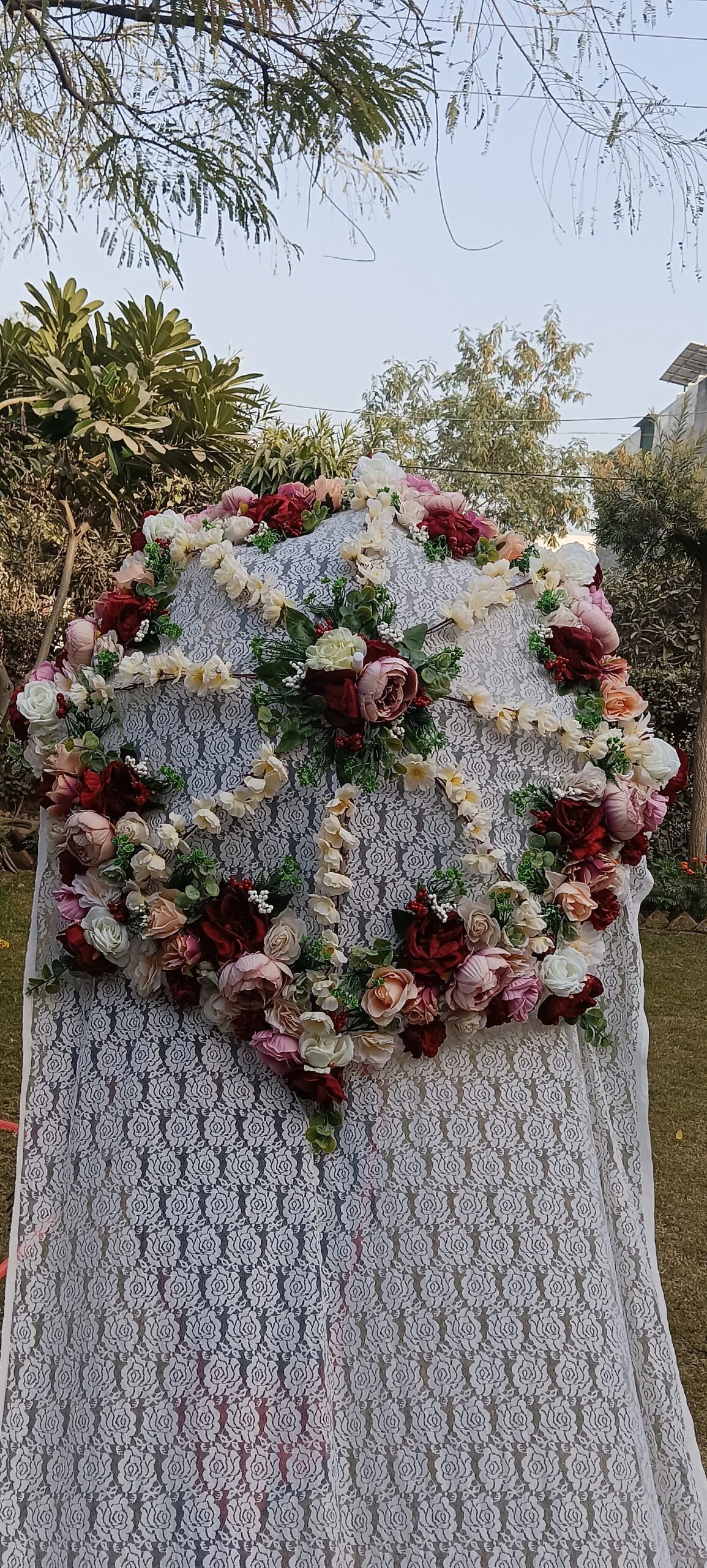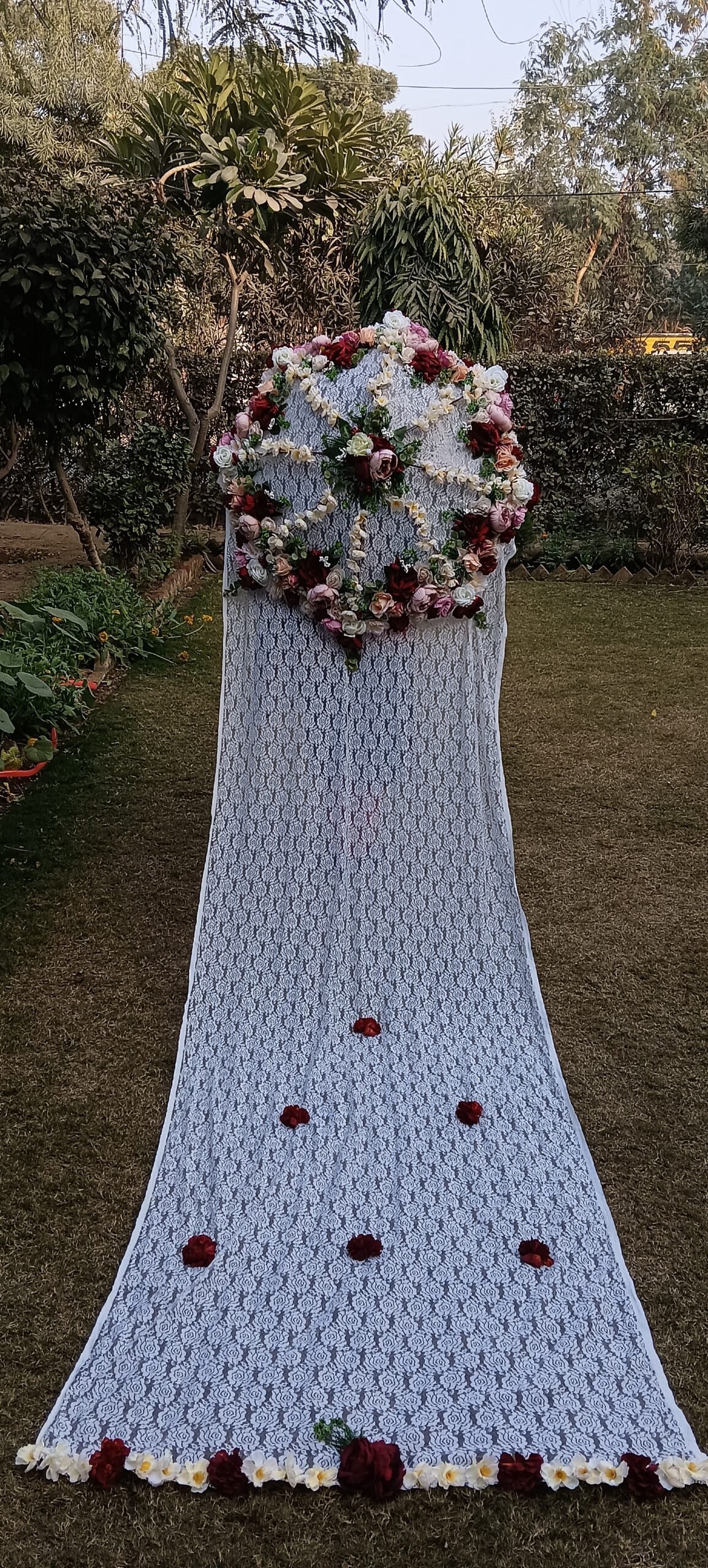 Floral umbrella with veil.