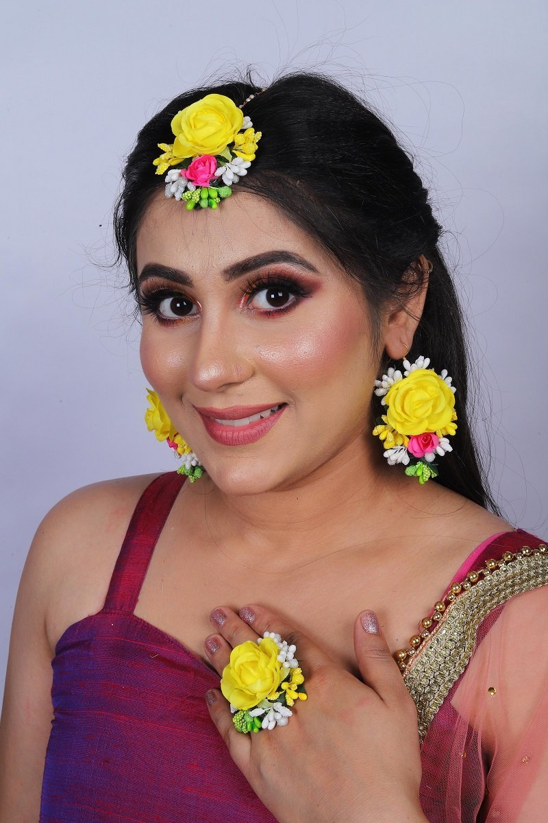 Yellow Floral Earring Tikka Set