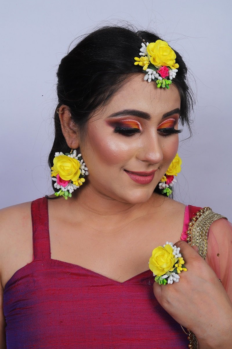 Yellow Floral Earring Tikka Se...